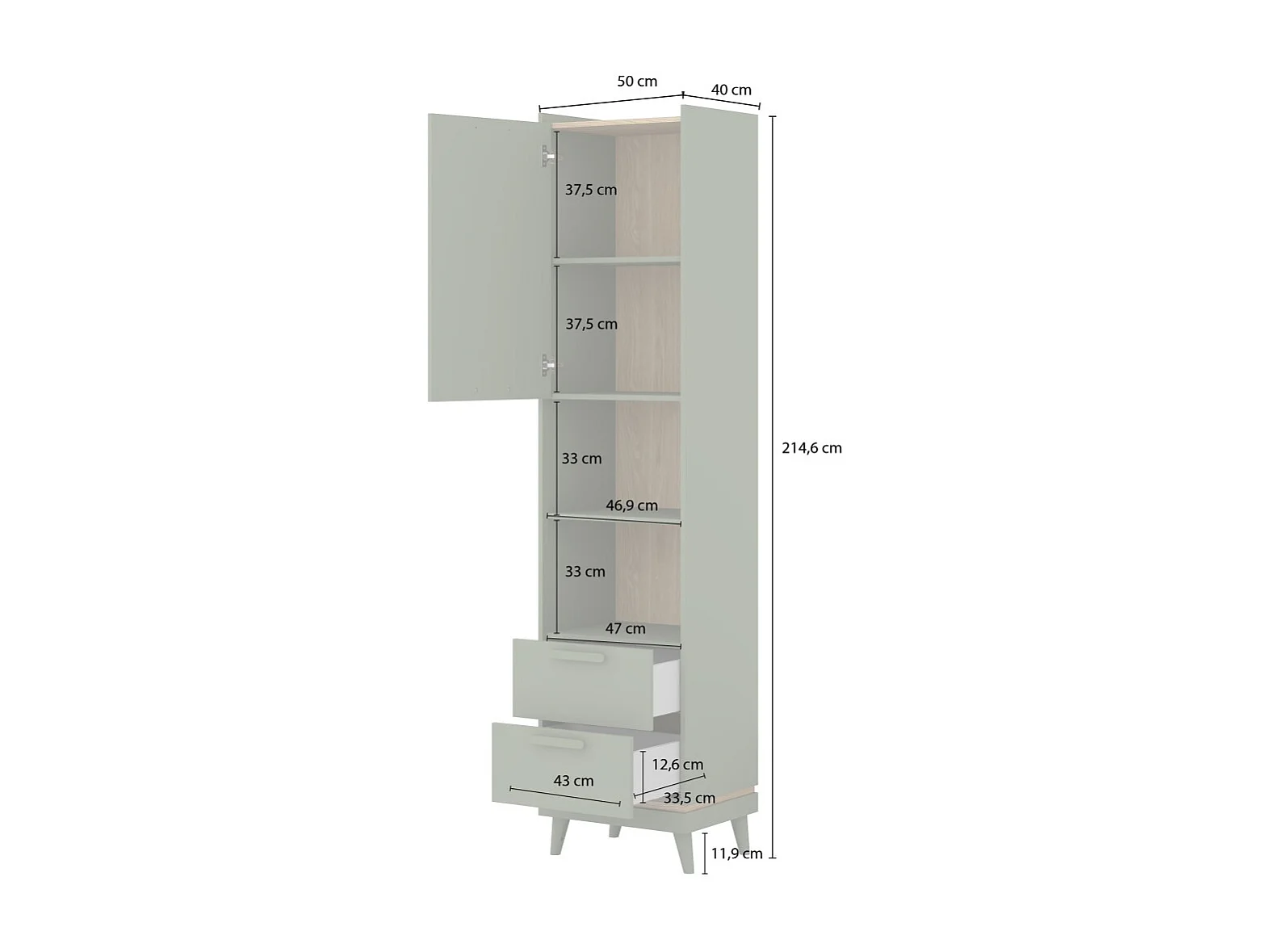 Bibliothèque NOKI – Chêne clair et moka – 1 porte + 2 tiroirs style scandinave