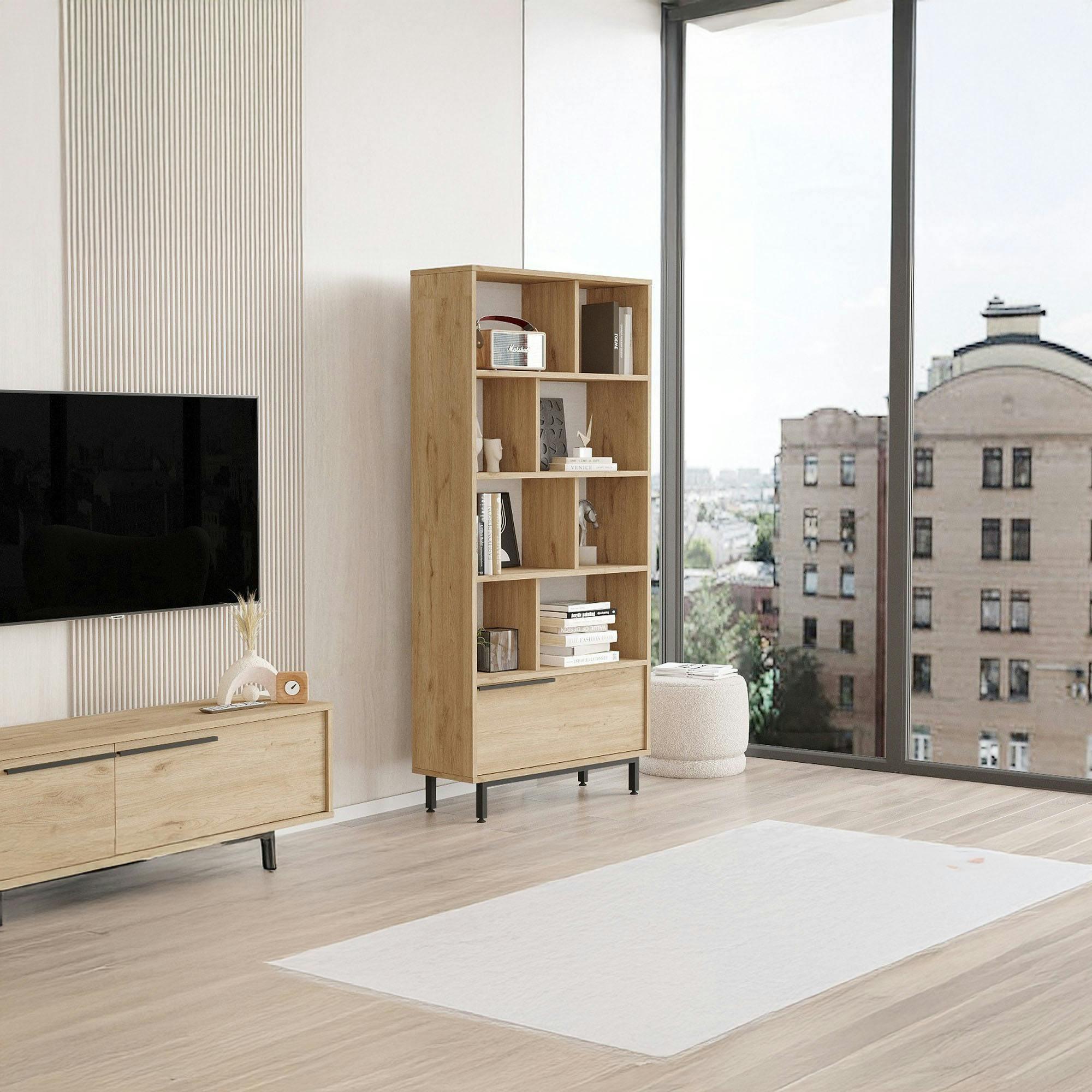 Bibliothèque ouverte effet bois avec rangement bas fermé JENA.