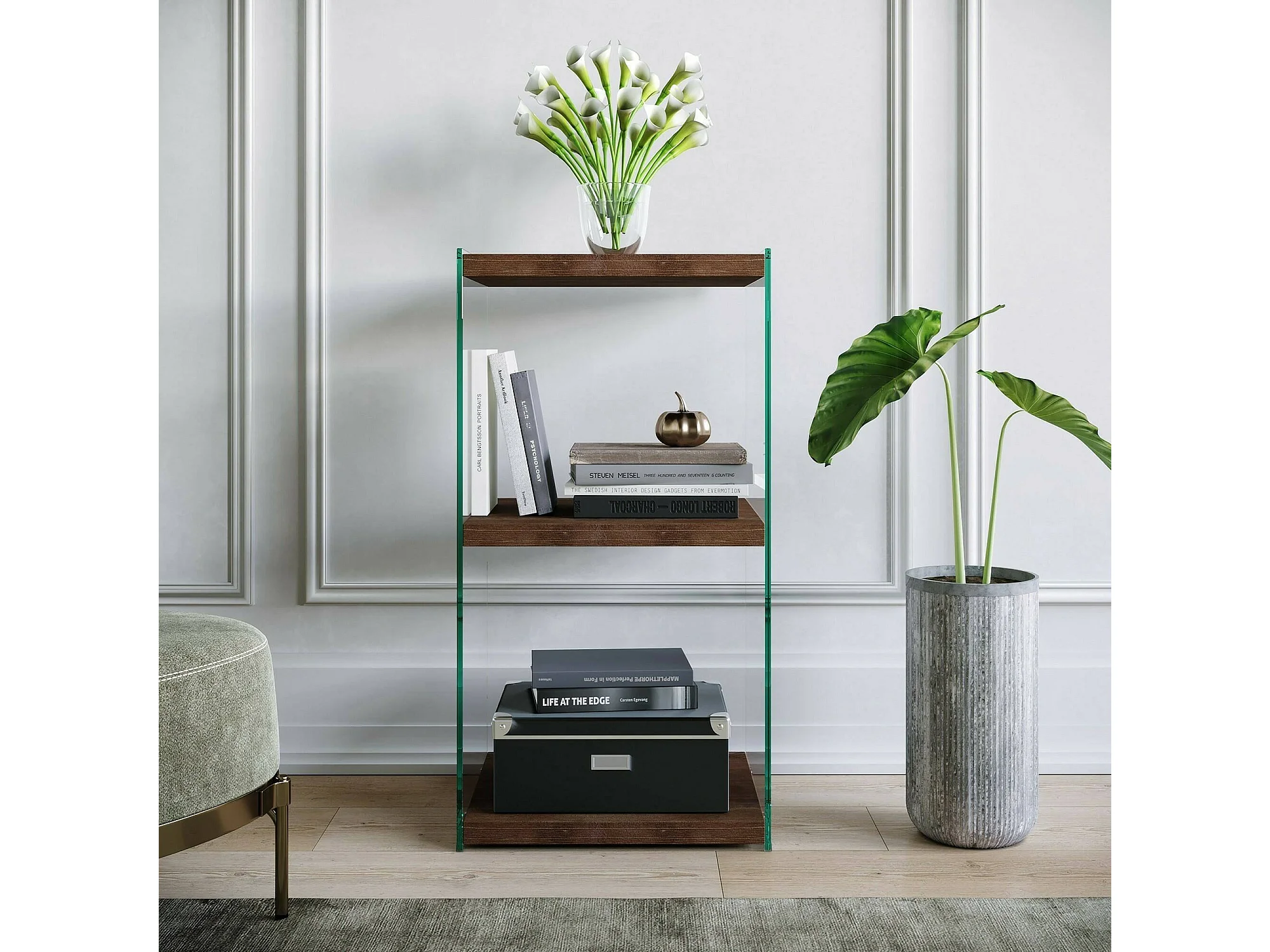 Bibliothèque Protea, Etagère de bureau, Porte-livre mobile, Librairie, 40x35h80 cm, Noyer