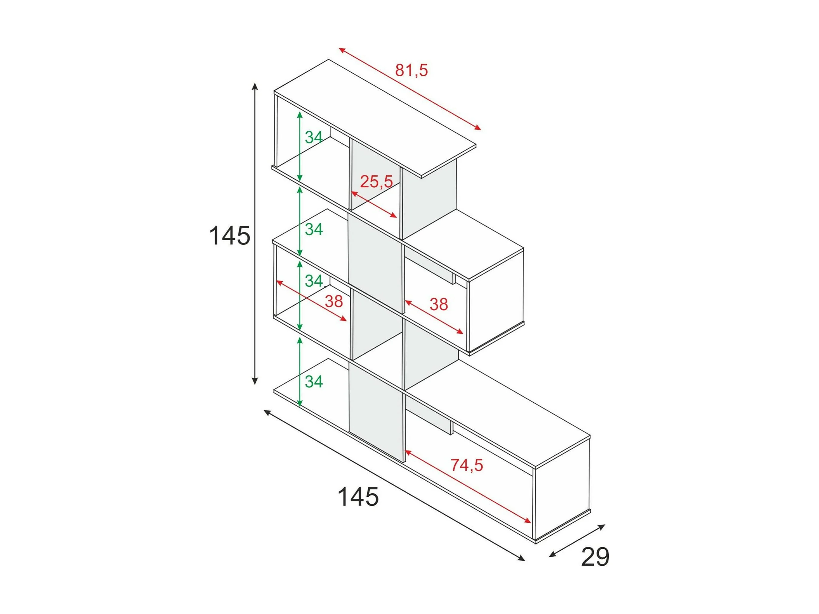 Bibliothèque Pueblo, Bibliothèque avec 7 compartiments, Étagère de bureau moderne, Armoire murale avec étagères, 145x29h145 cm, Blanc et Ciment