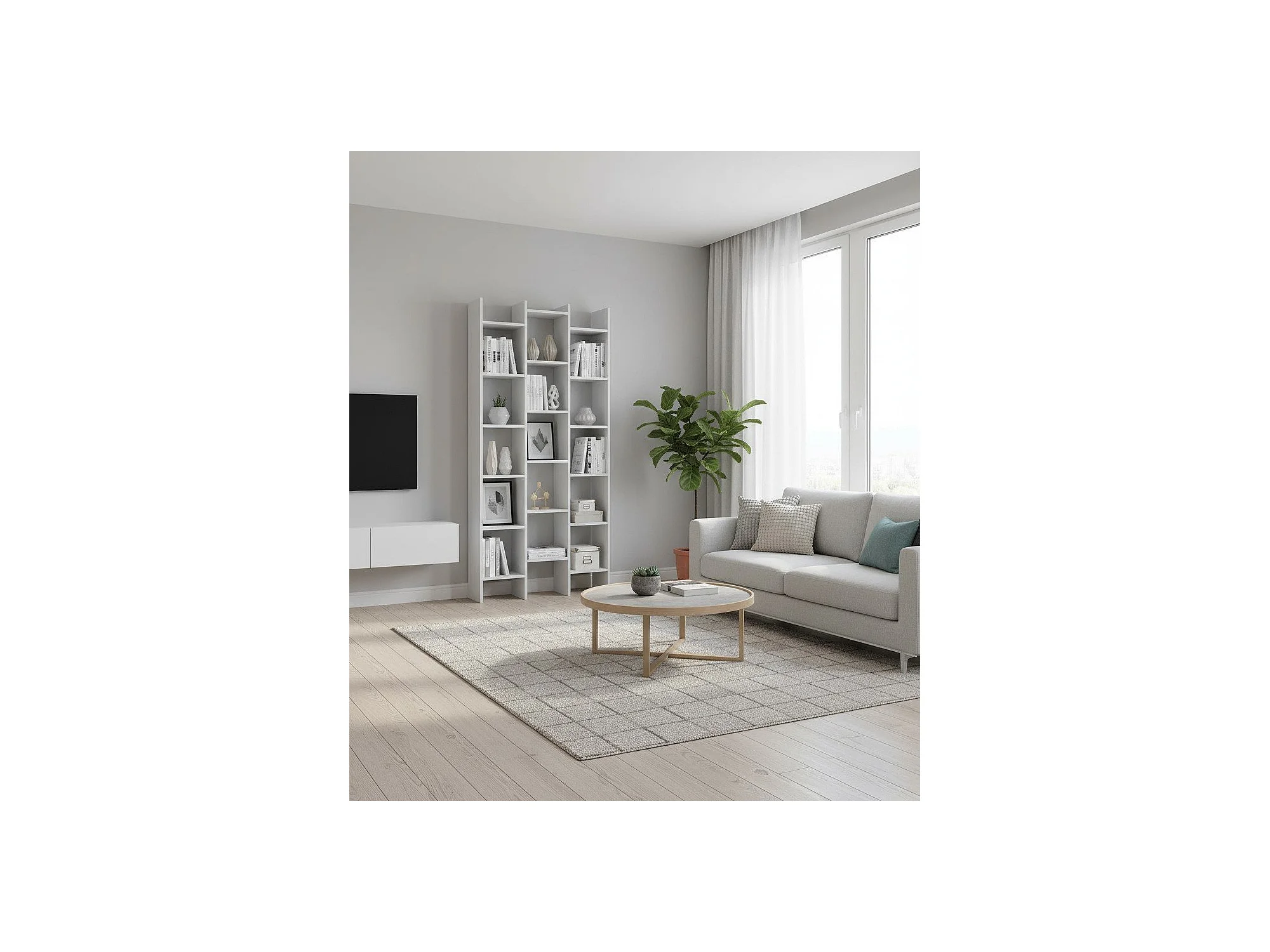 Bibliothèque Rockford, Bibliothèque avec 18 étagères, Étagère avec compartiments carrés, Étagère de bureau moderne, 96x29h192 cm, Blanc