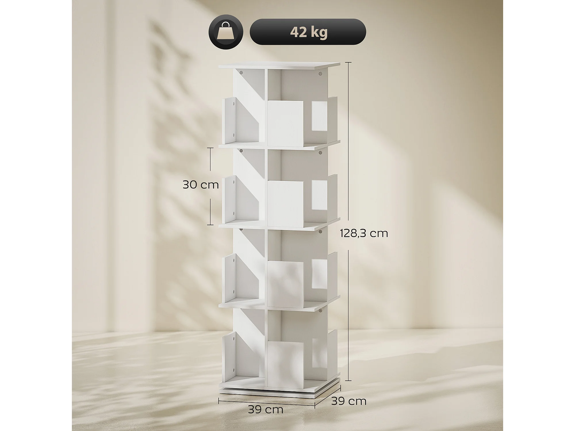 Bibliothèque rotative 4 niveaux 16 compartiments dim. 39x39x128cm blanc