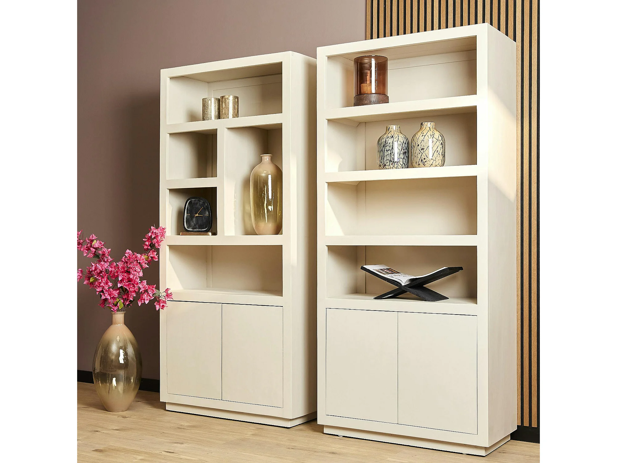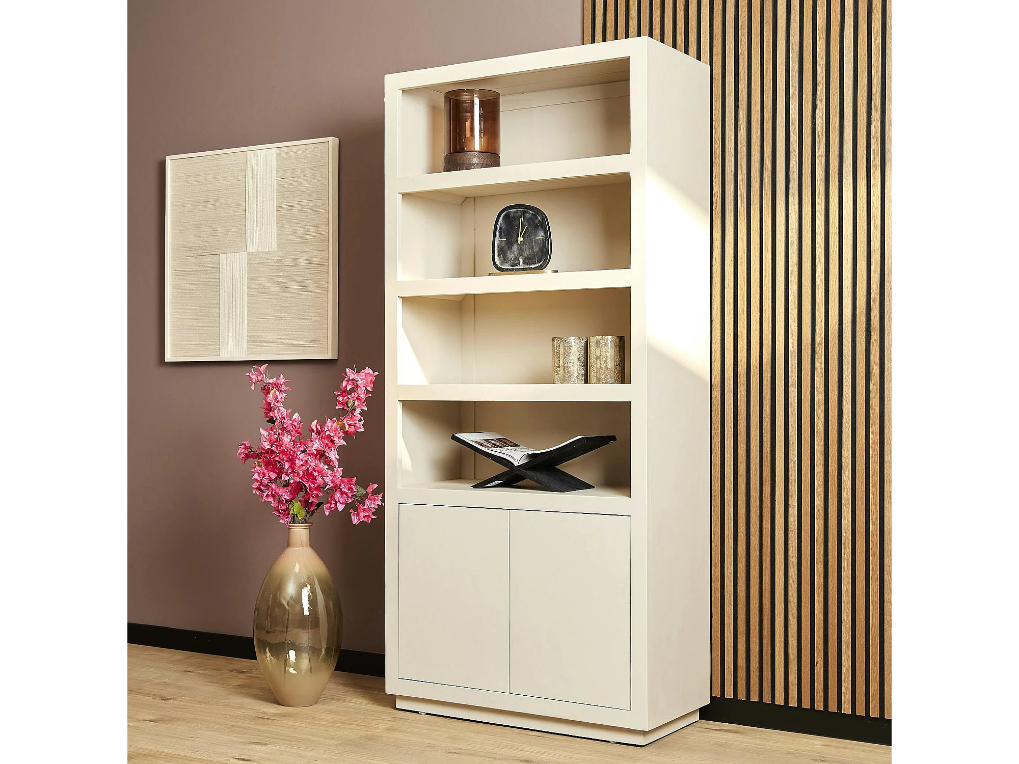 Bibliothèque salon bois sable MONTARO
