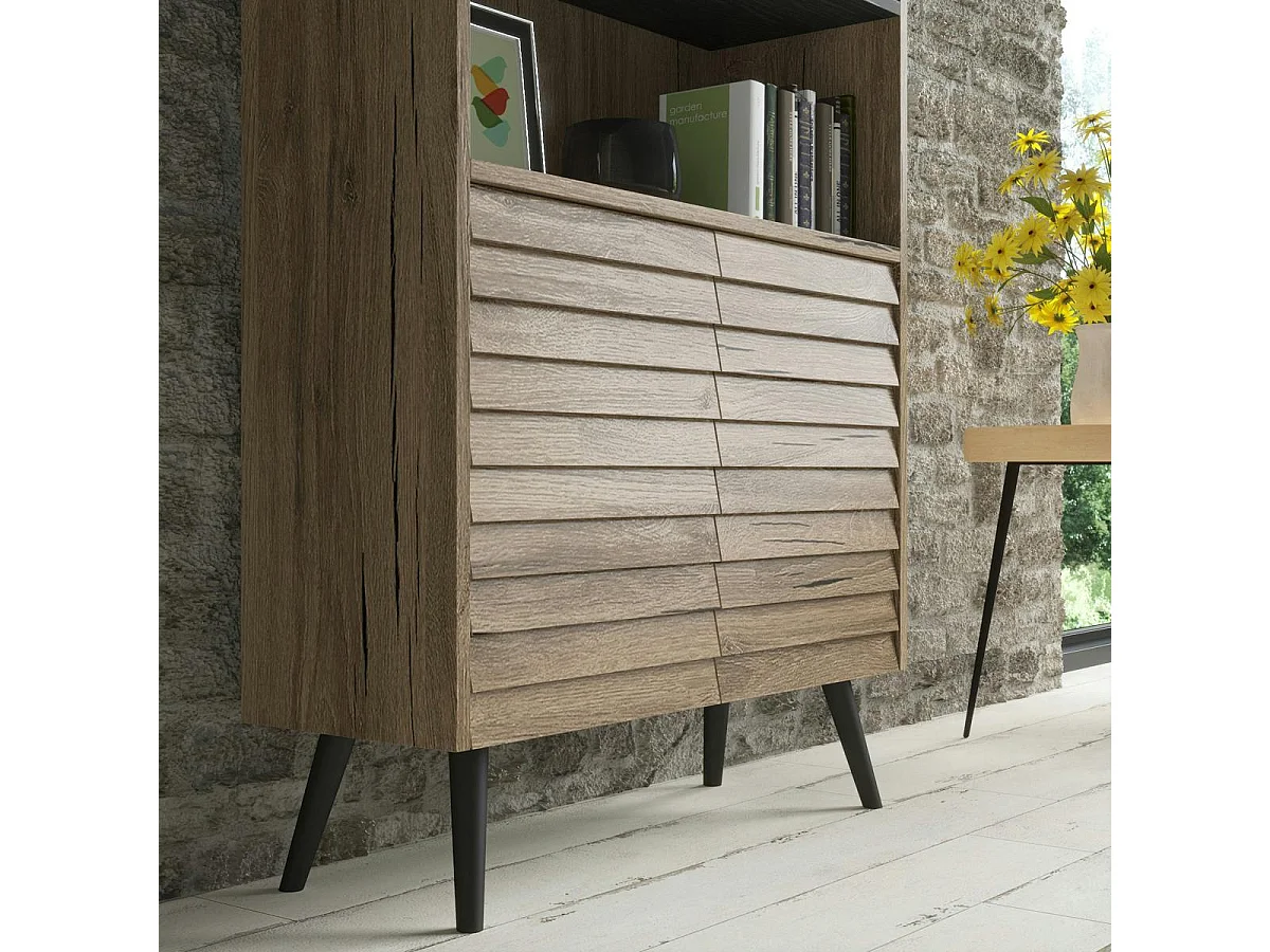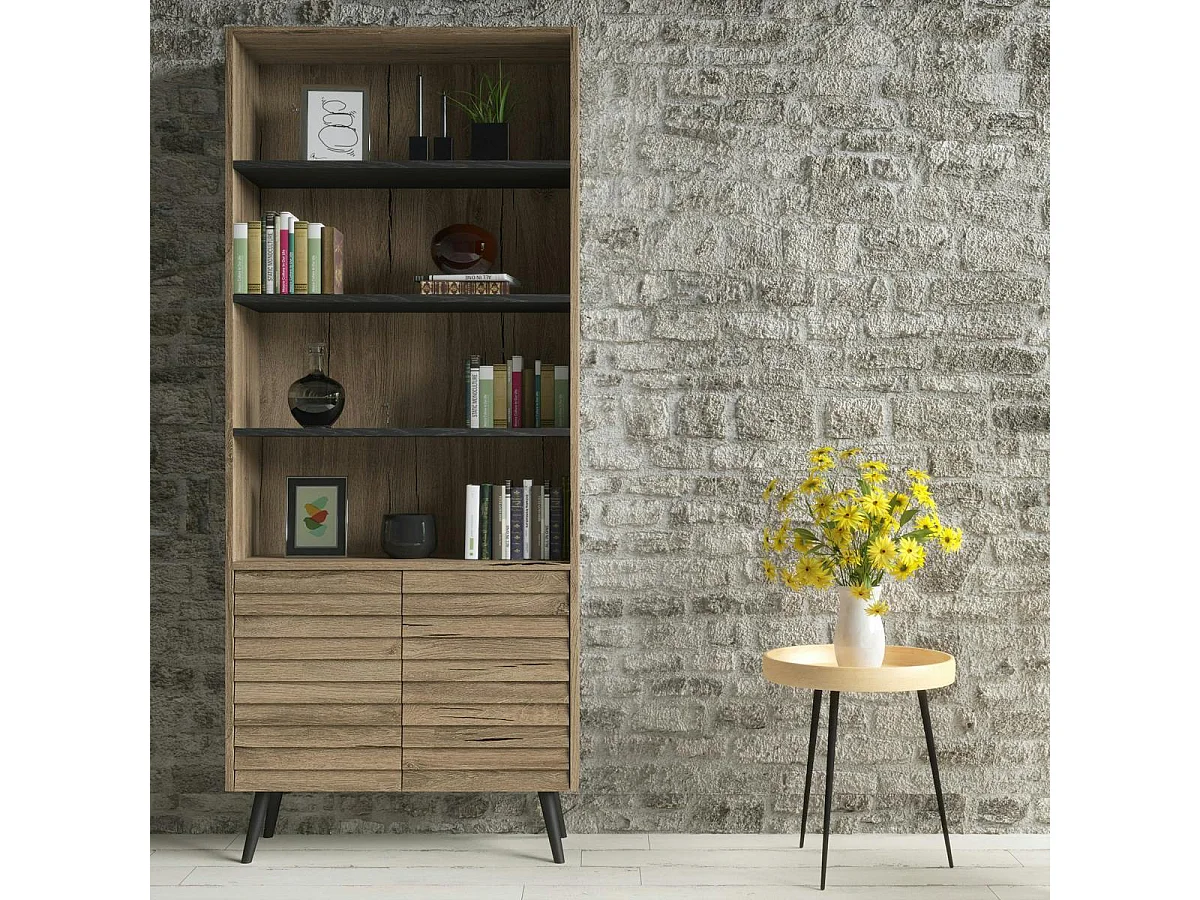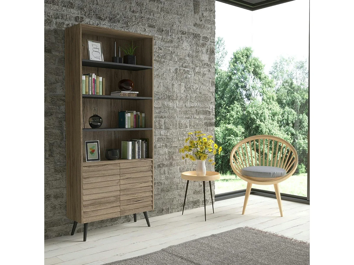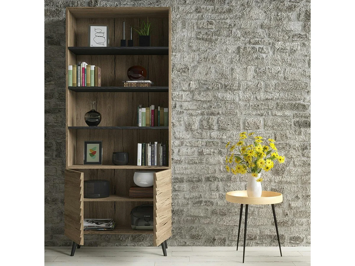 Bibliothèque salon effet noyer, 2 portes sculptées MARFA