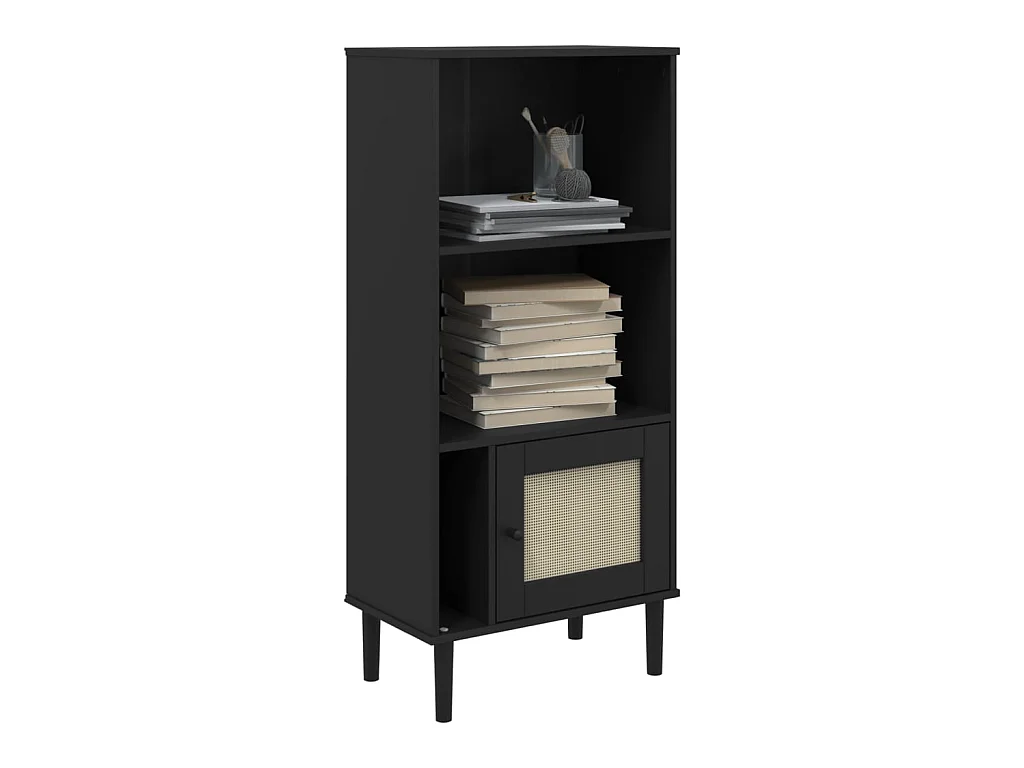 Bibliothèque SENJA aspect de rotin noir bois massif de pin