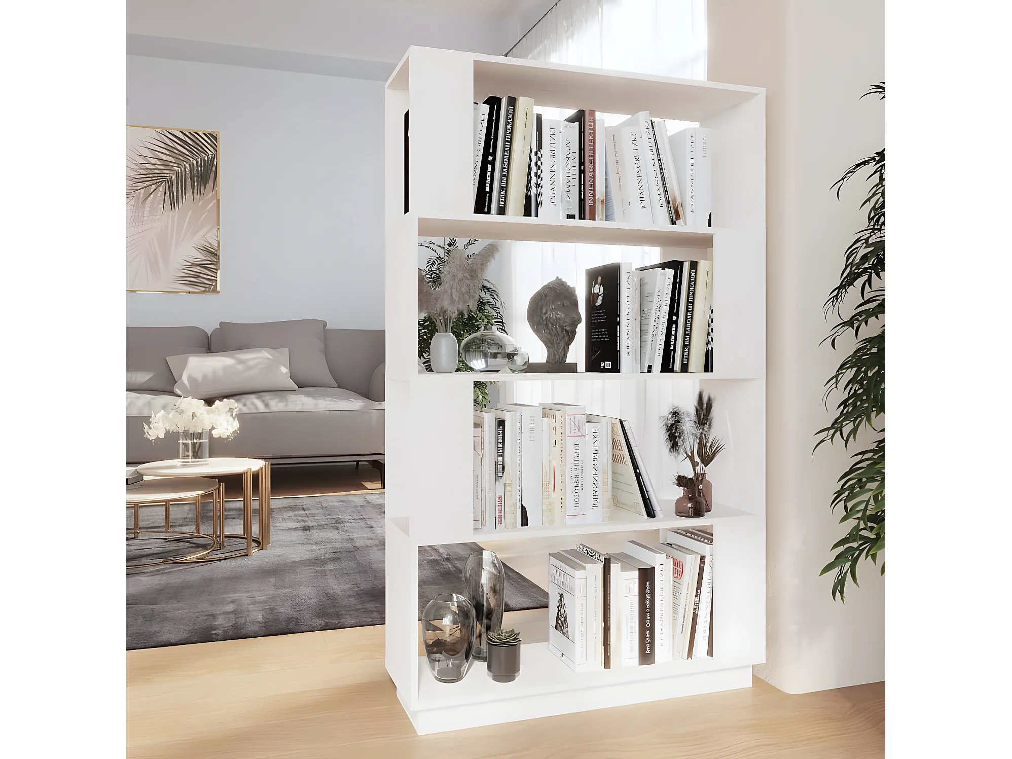 Bibliothèque-Séparateur de pièce Blanc 80x25x132 Pin solide