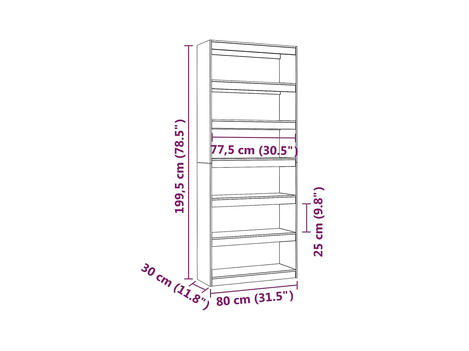 Bibliothèque-Séparateur de pièce Blanc 80x30x199,5 Pin solide