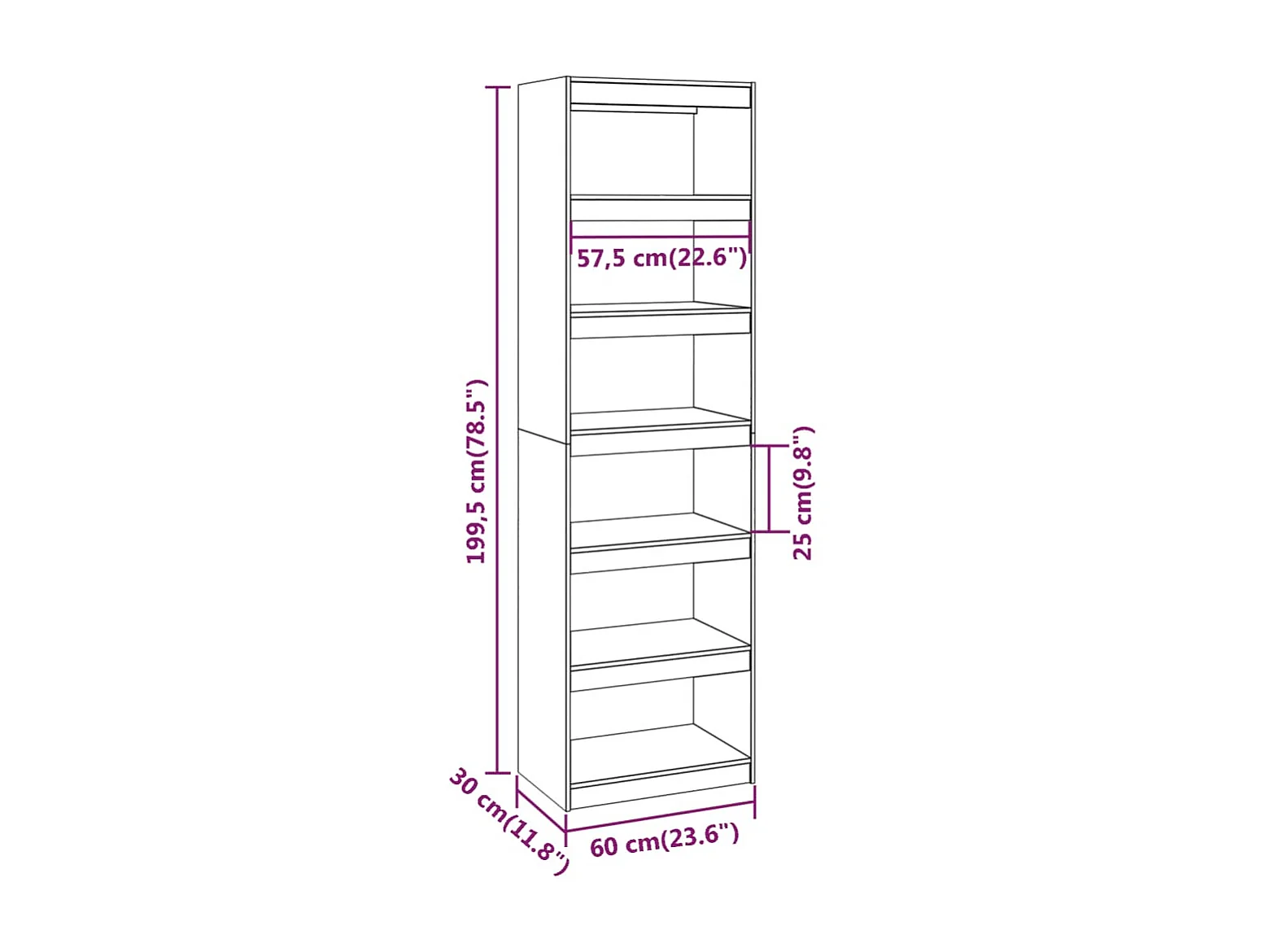 Bibliothèque à 5 niveaux sonoma gris 60x30x154