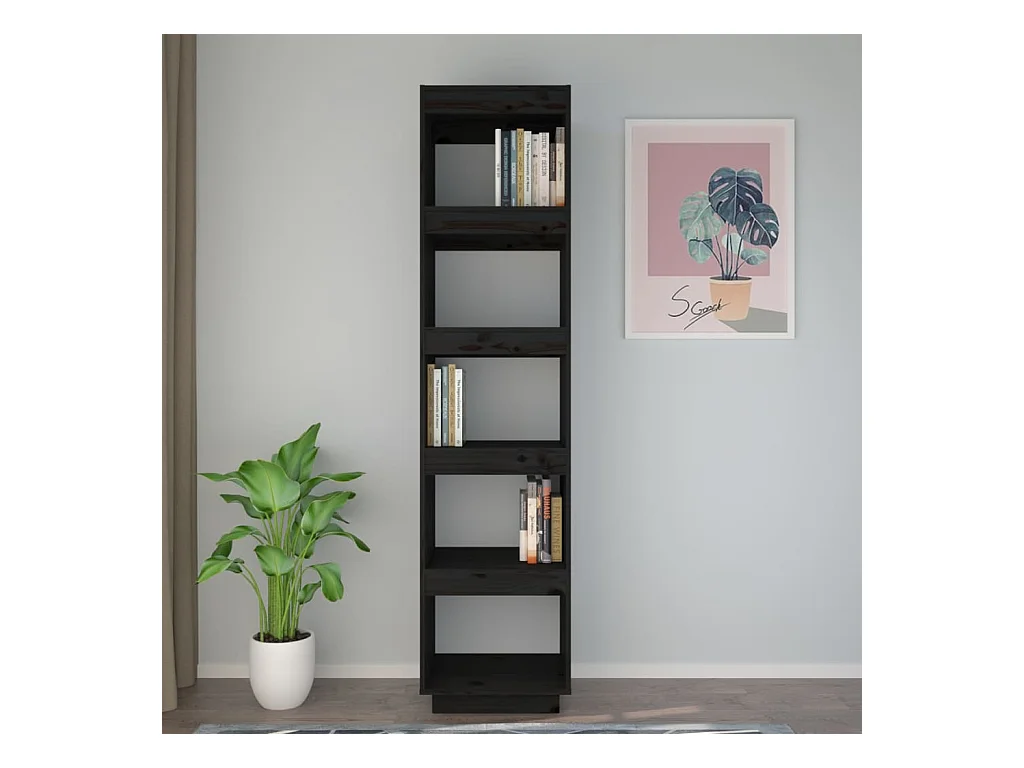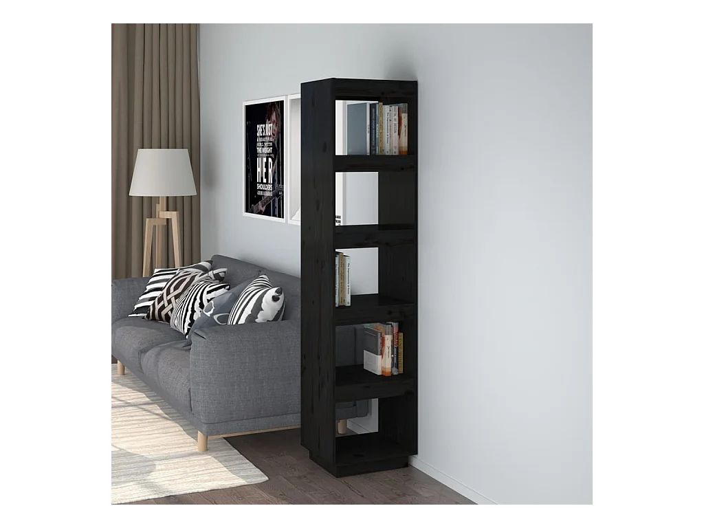 Bibliothèque-Séparateur de pièce Noir 40x35x167 Pin solide