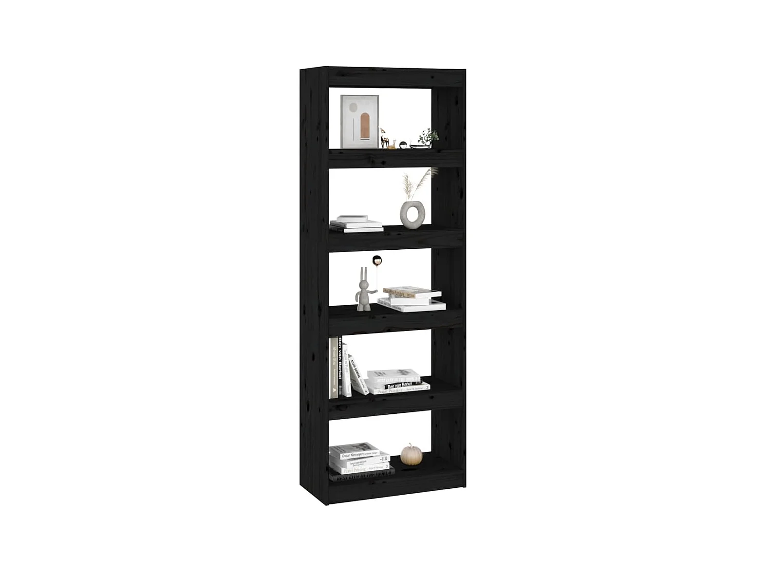 Bibliothèque-Séparateur de pièce Noir 60x30x135,5 Pin solide