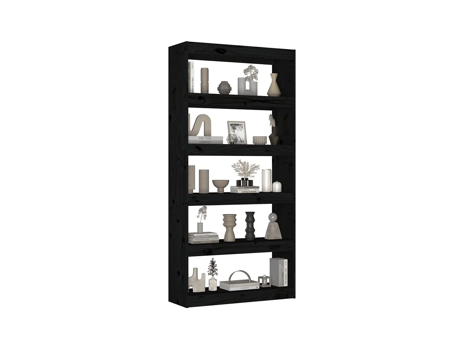 Bibliothèque-Séparateur de pièce Noir 80x30x167,4 Pin solide