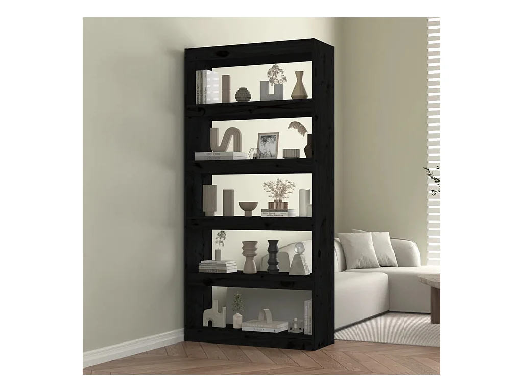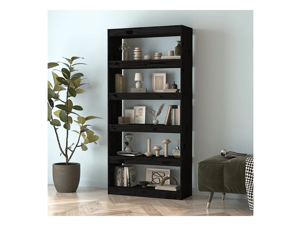 Bibliothèque-Séparateur de pièce Noir 80x30x135,5 Pin solide