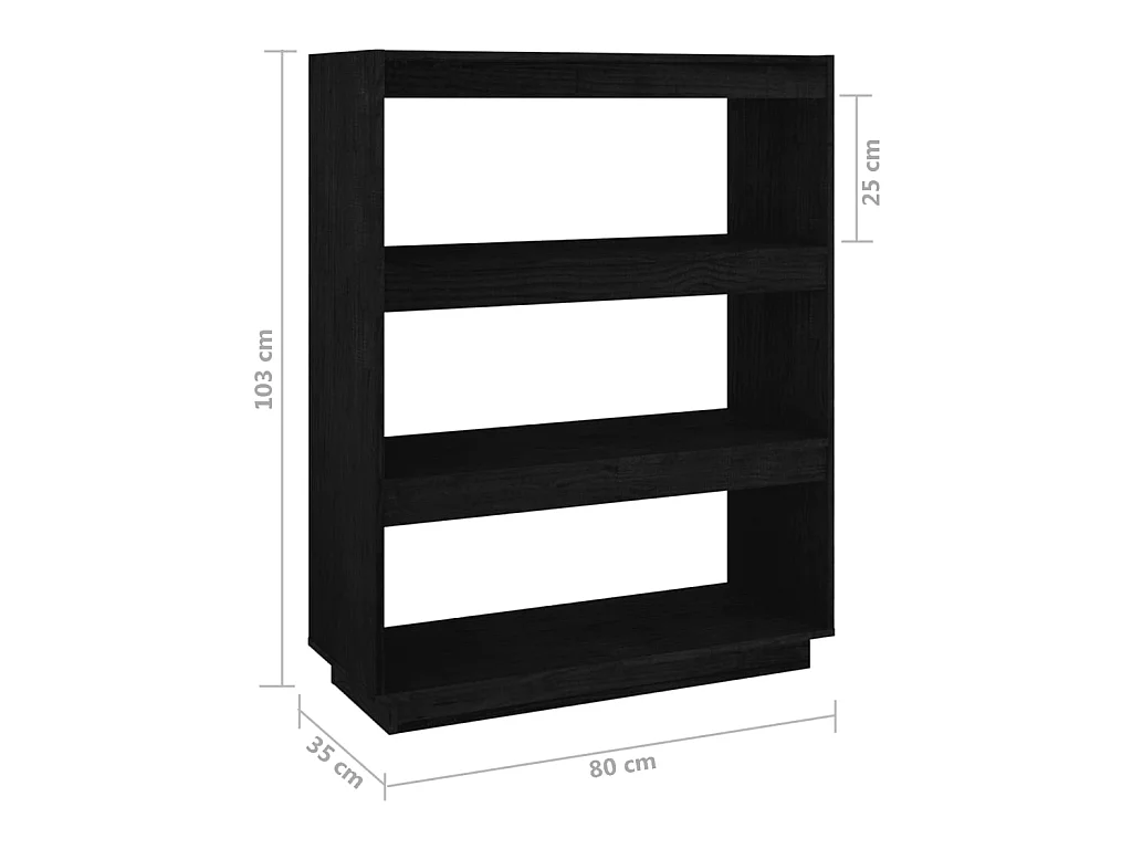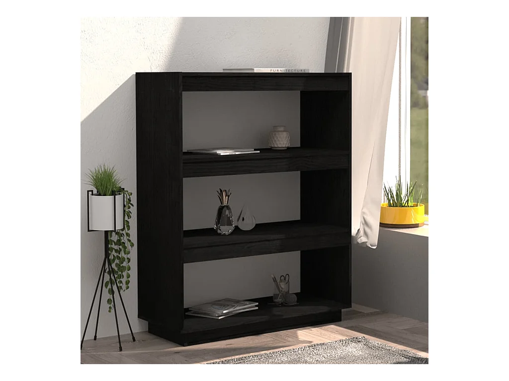 Bibliothèque-Séparateur de pièce Noir 80x30x103,5 Pin solide