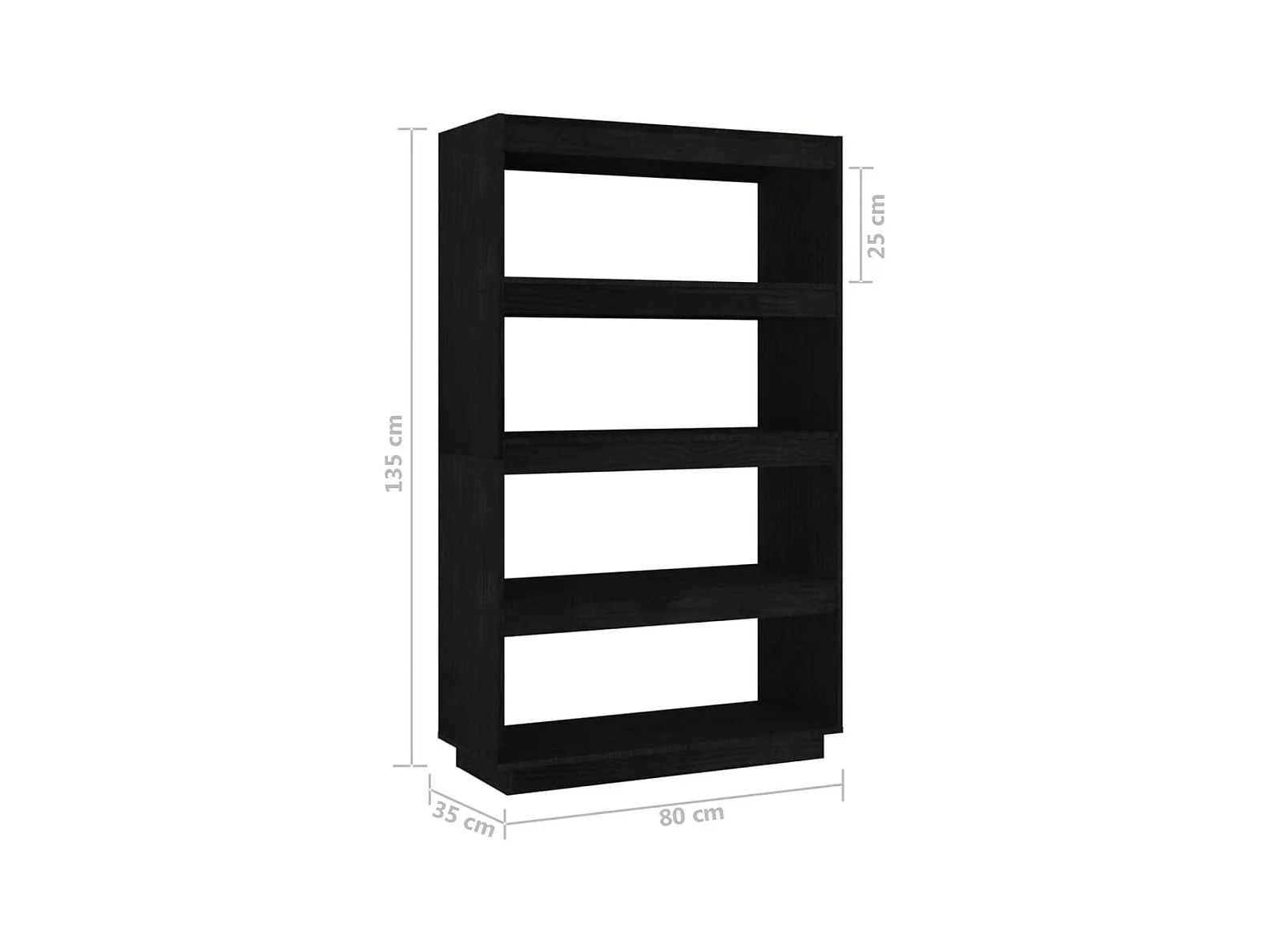 Bibliothèque-Séparateur de pièce Noir 80x35x135 Pin massif