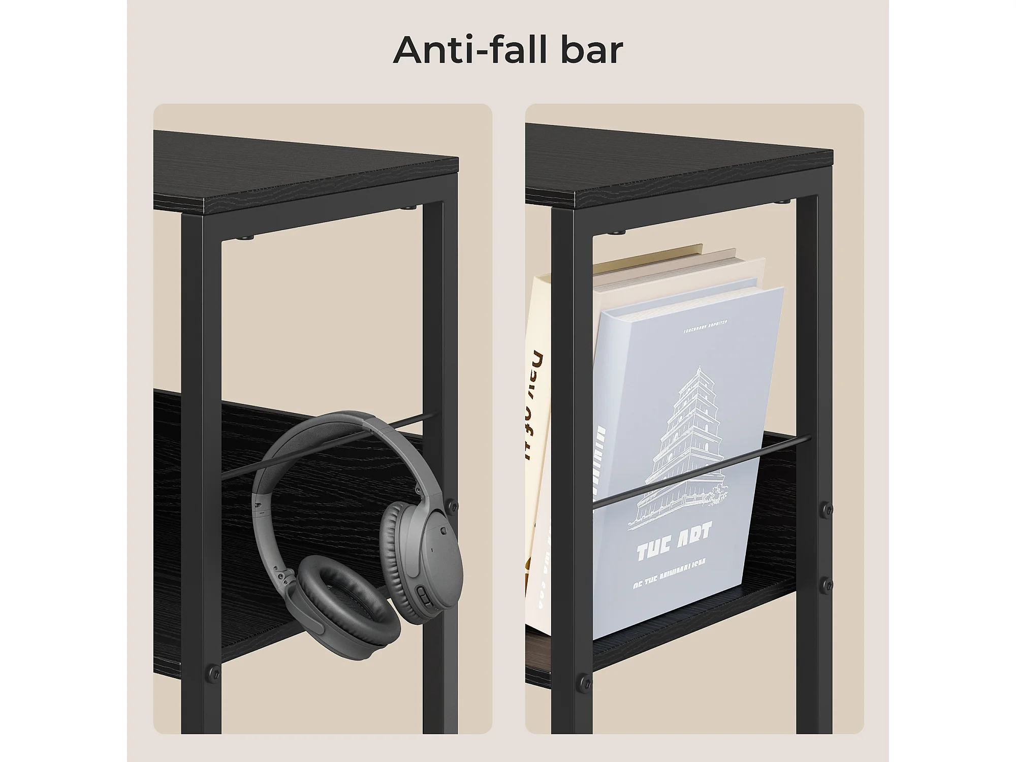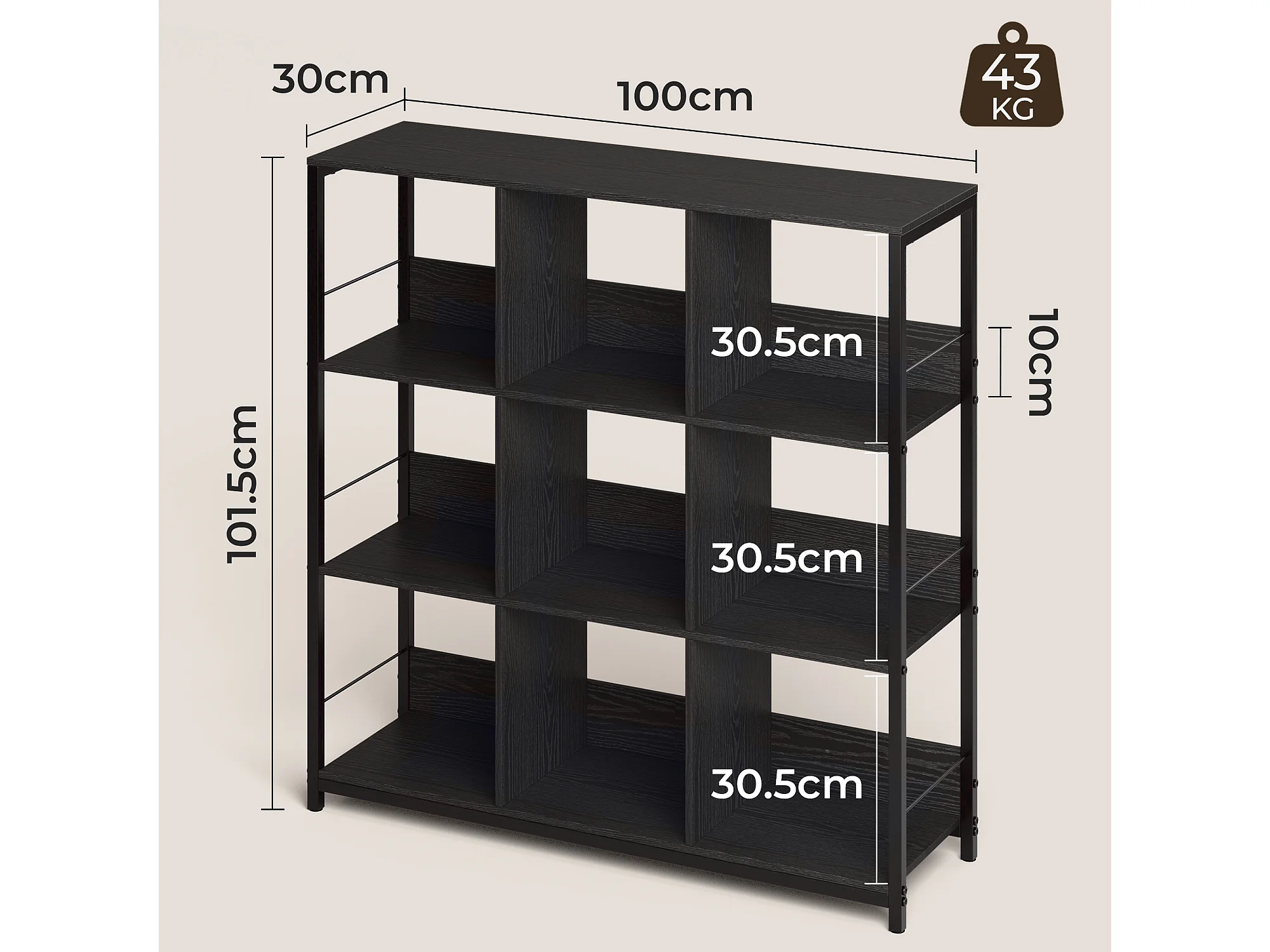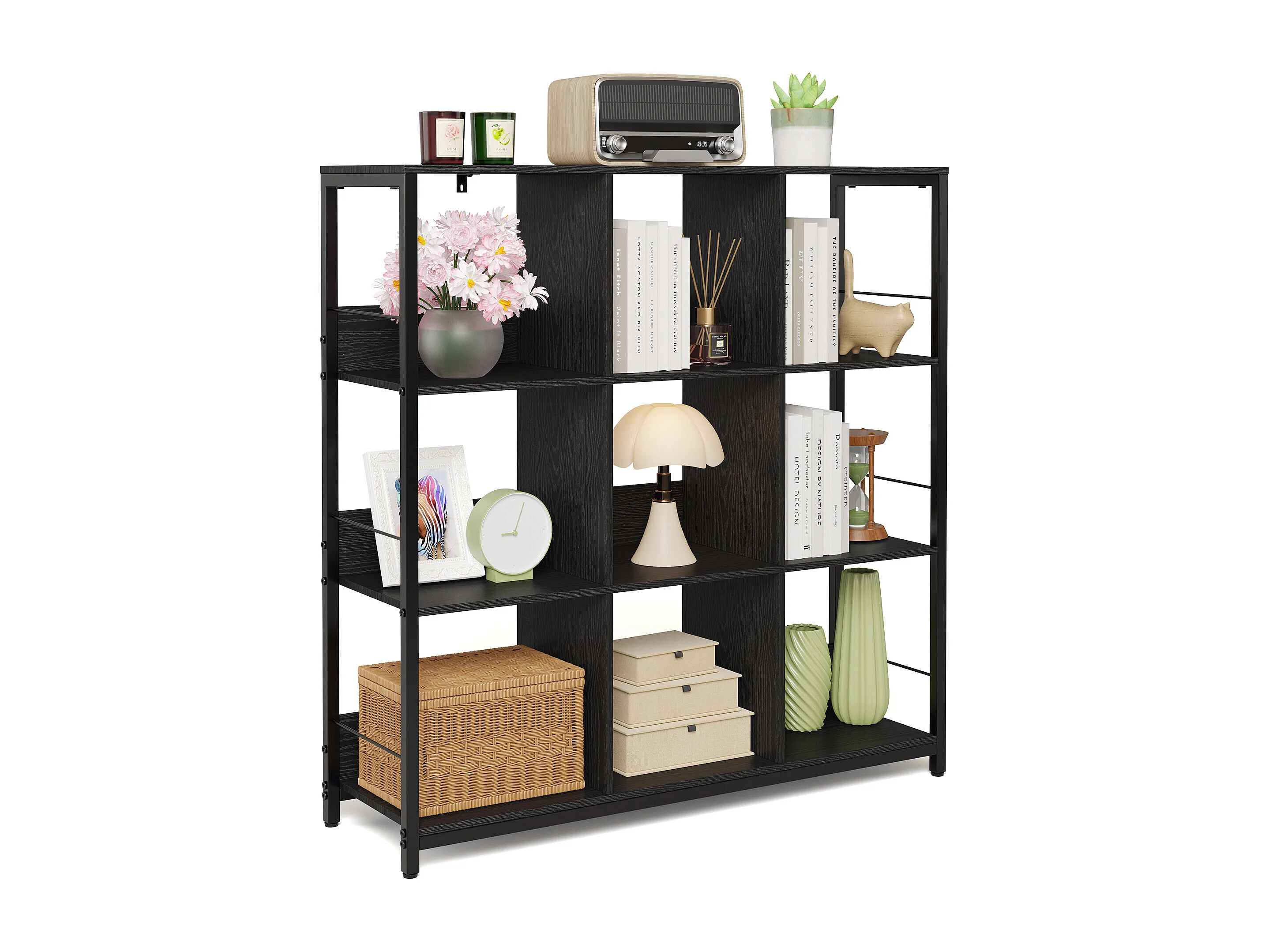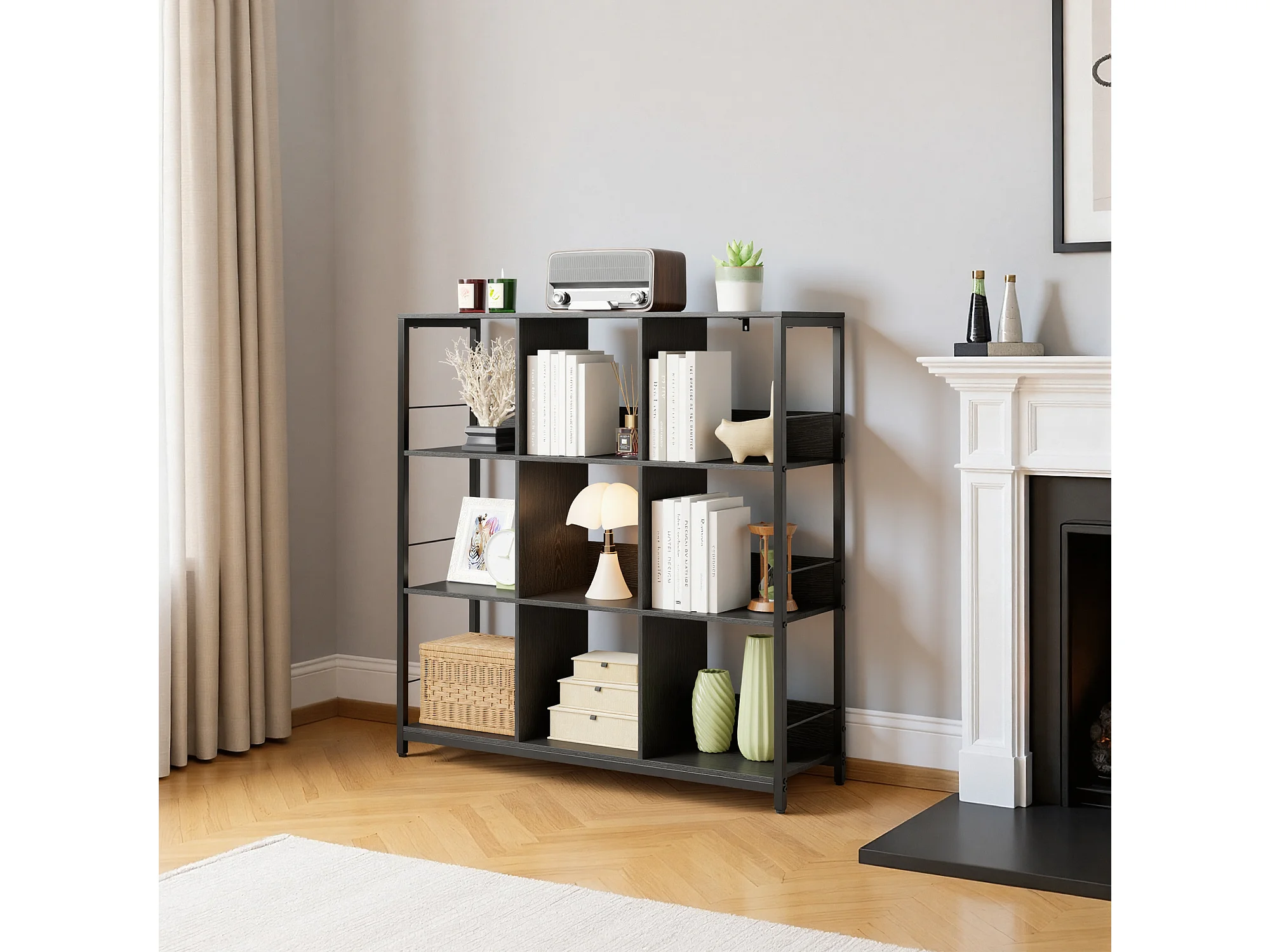Bibliothèque Séparation 9 Cases Imitation Chêne Et Acier Noir