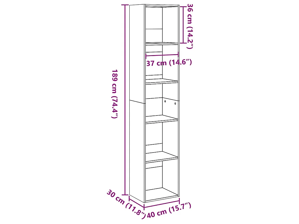 Bibliothèque sonoma gris 40x30x189 cm bois d'ingénierie