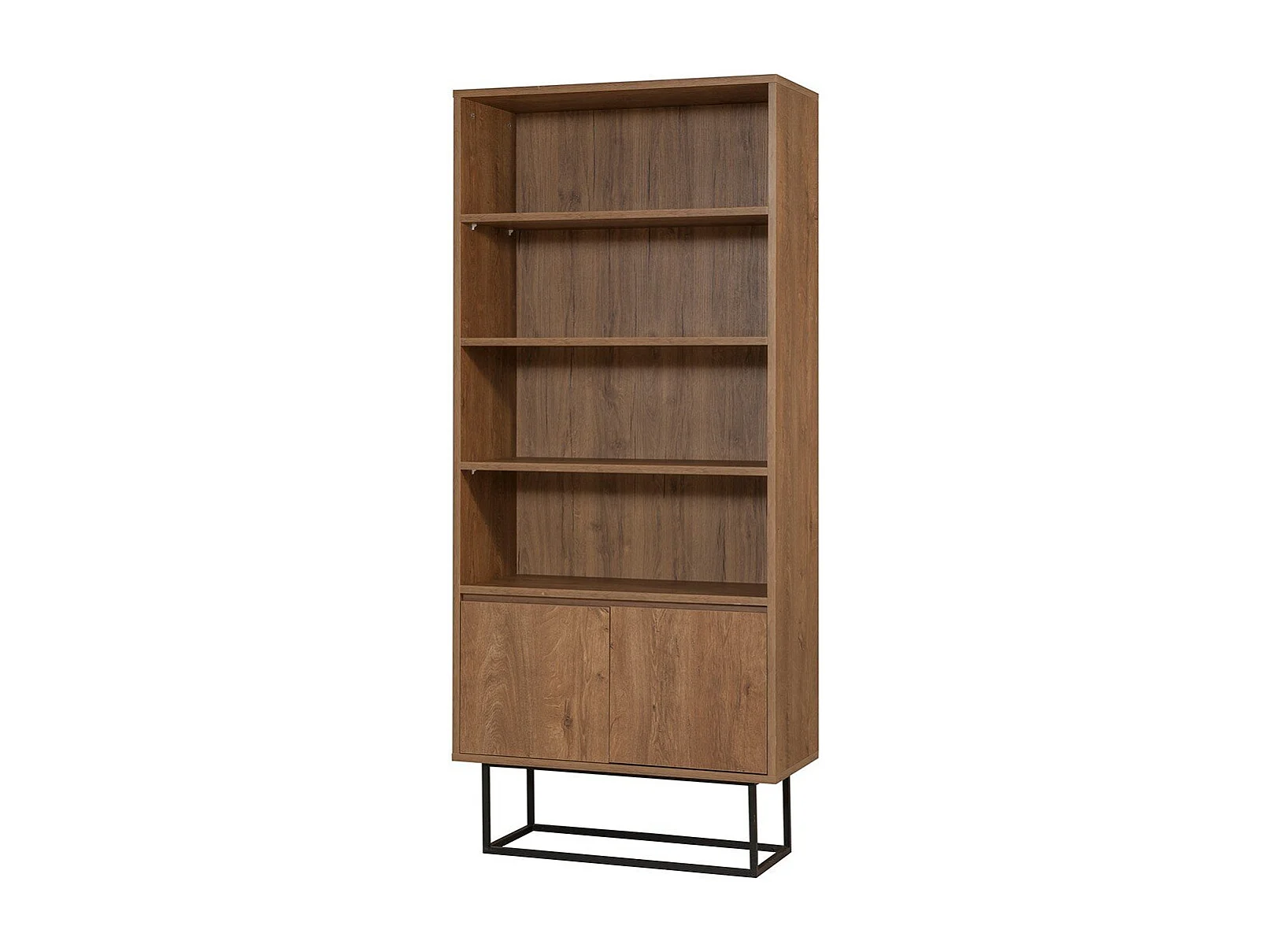 Etagère avec 3 tablettes et 2 portes décor noyer H182 cm - Rea