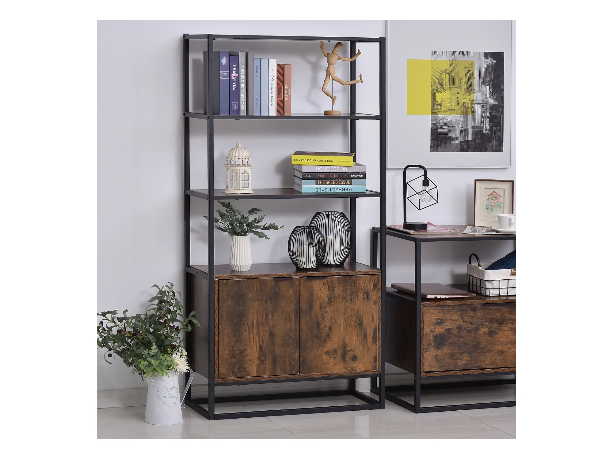 Bibliothèque, Étagère de Rangement à 4 Niveaux style industriel panneaux particules aspect vieux bois métal noir