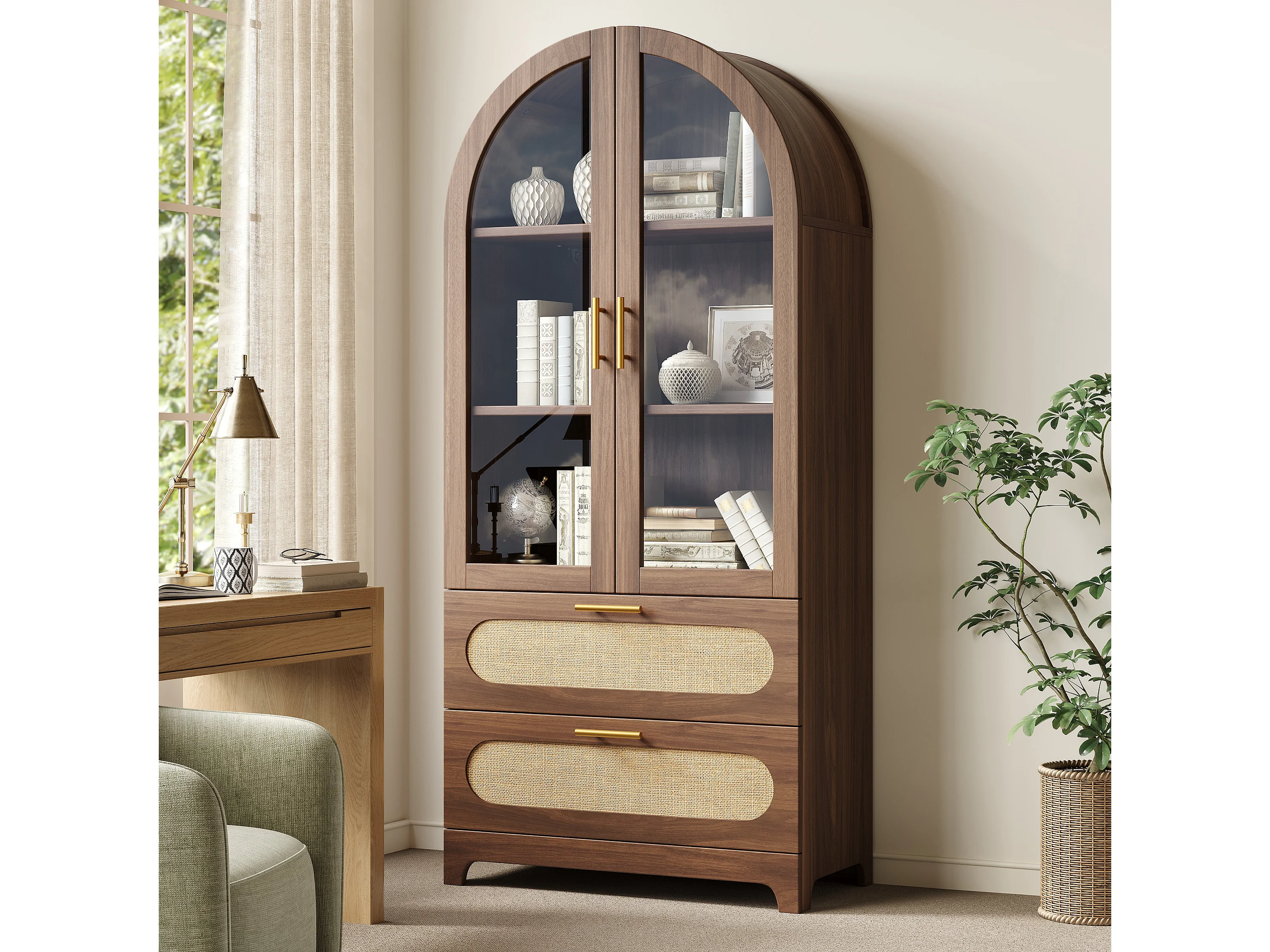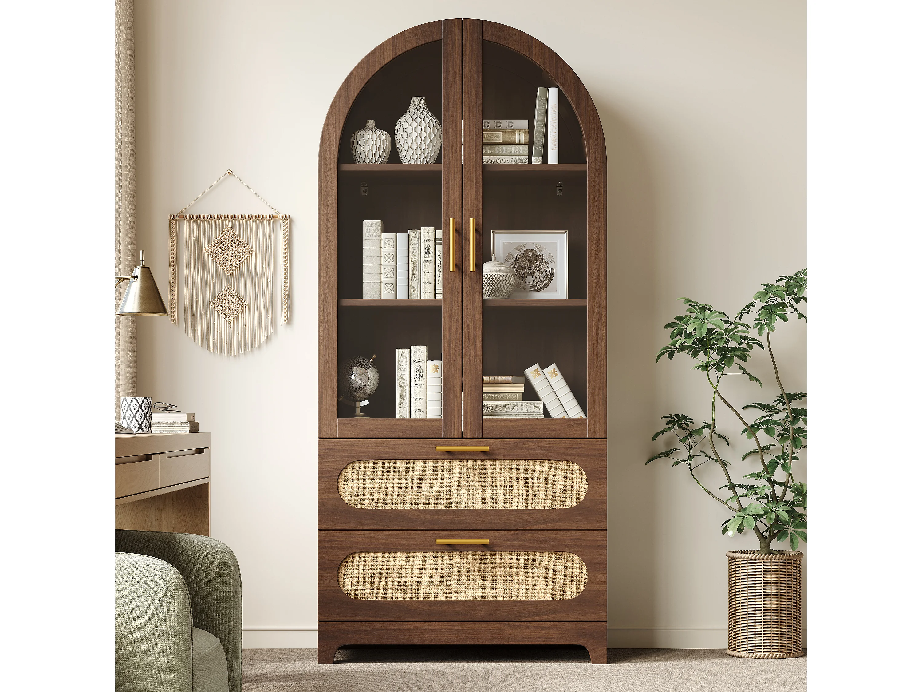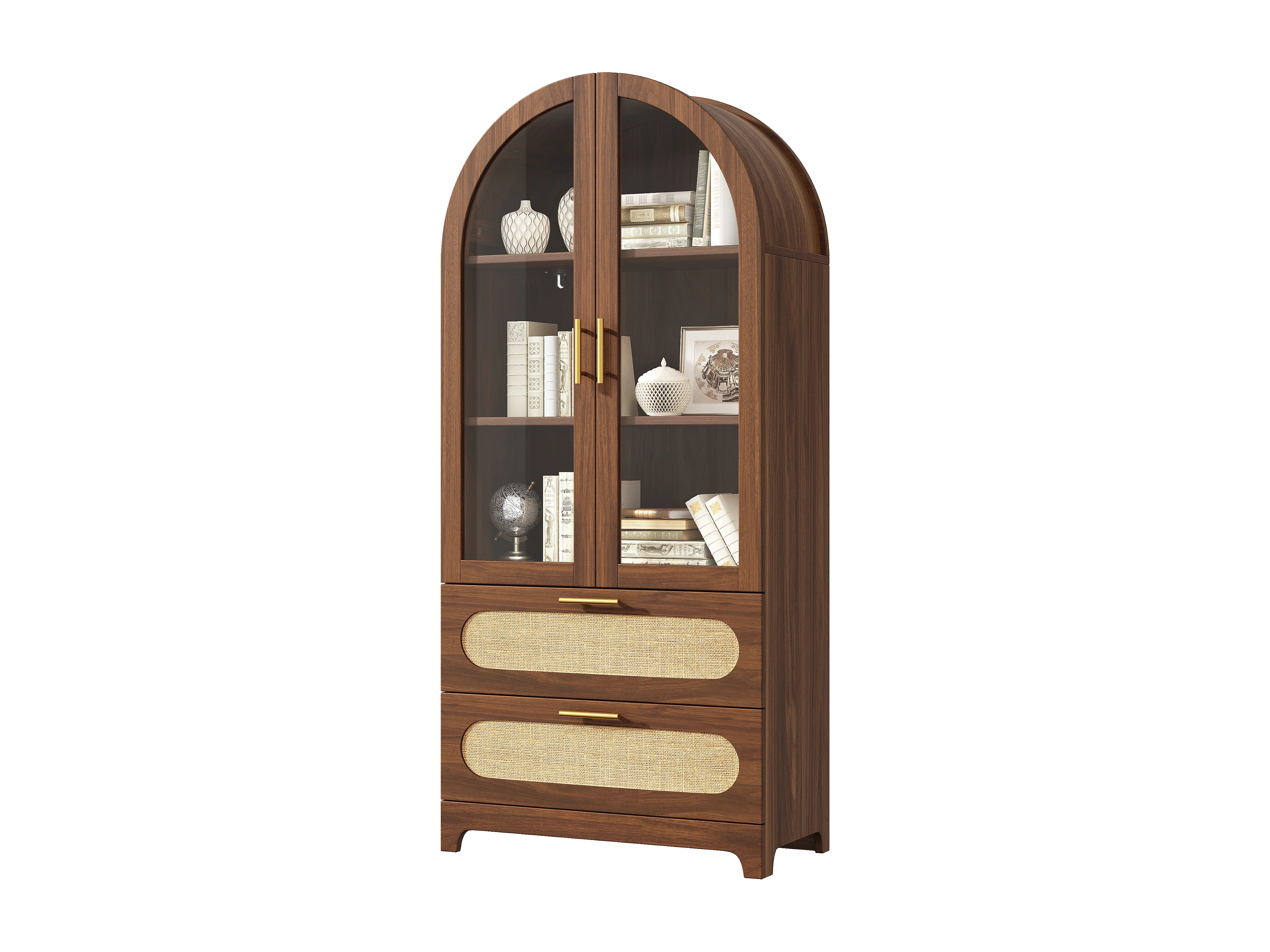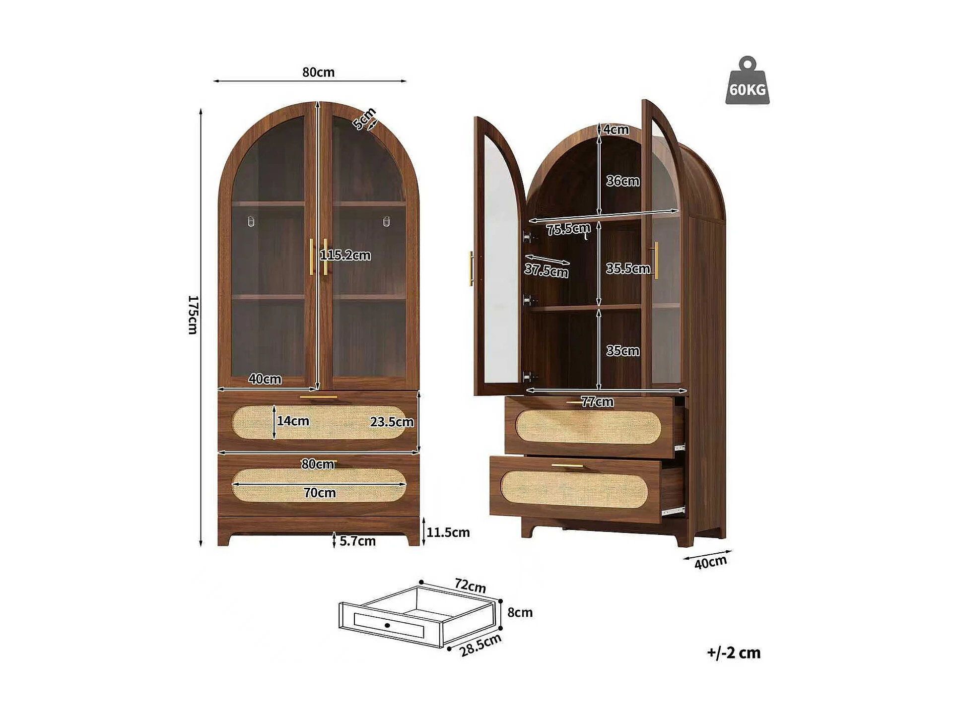 Bibliothèque style rétro - 175 x 80 x 40 cm - avec 2 tiroirs + étagères réglables + 2 portes - MDF - marron
