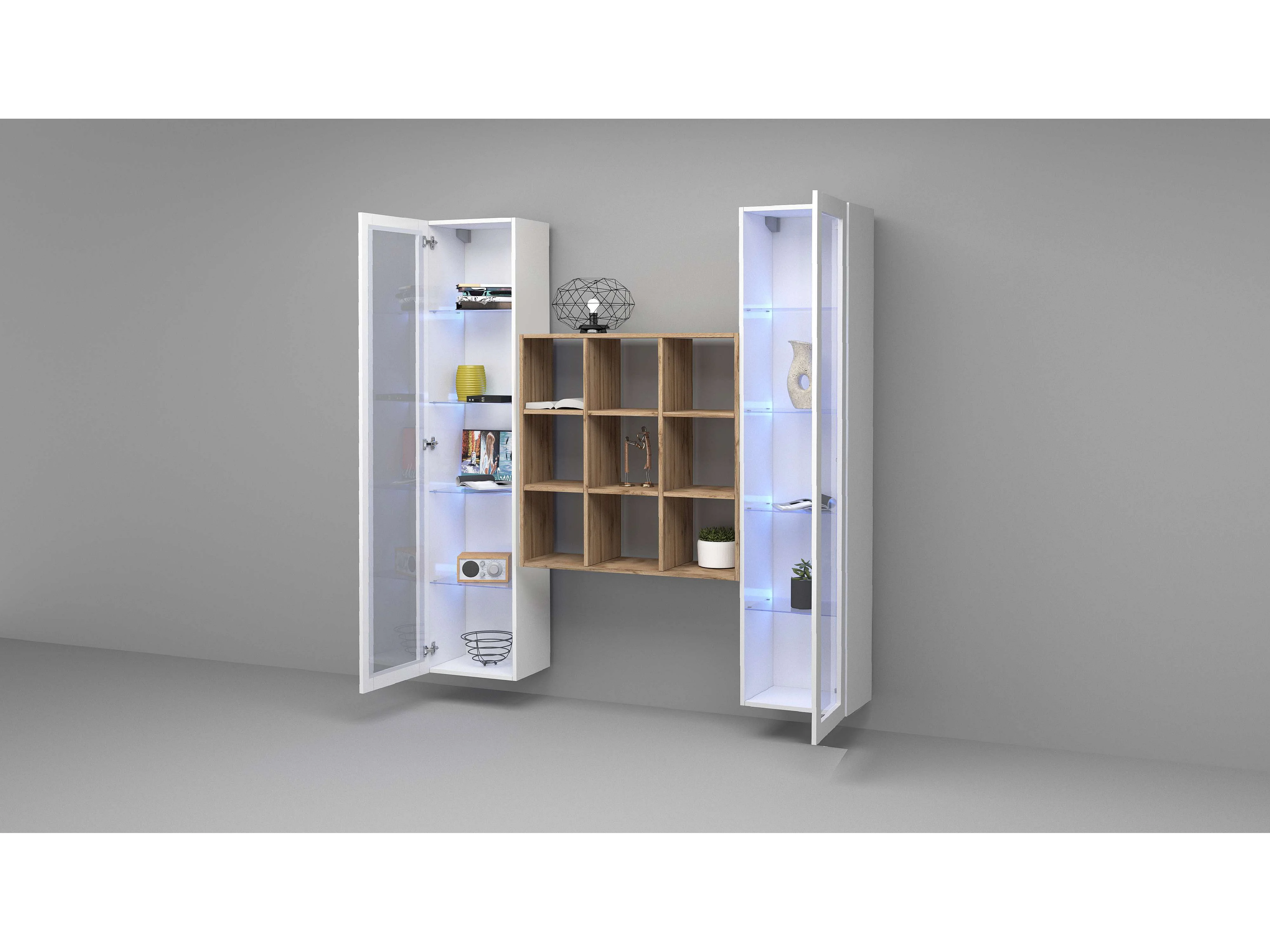 Bibliothèque suspendue en bois 2 vitrines colonnes blanc Vila WH