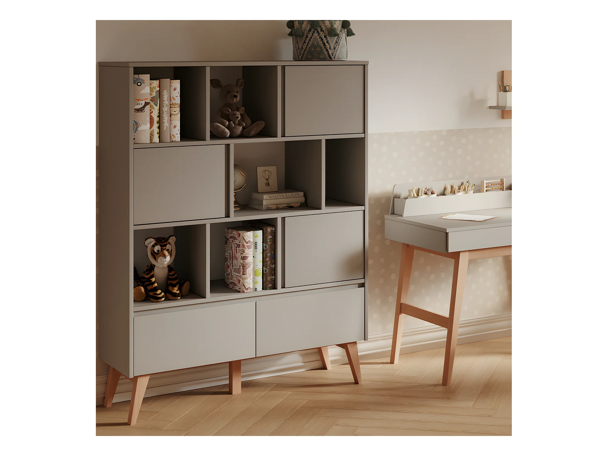Bibliothèque Swing Gris et bois