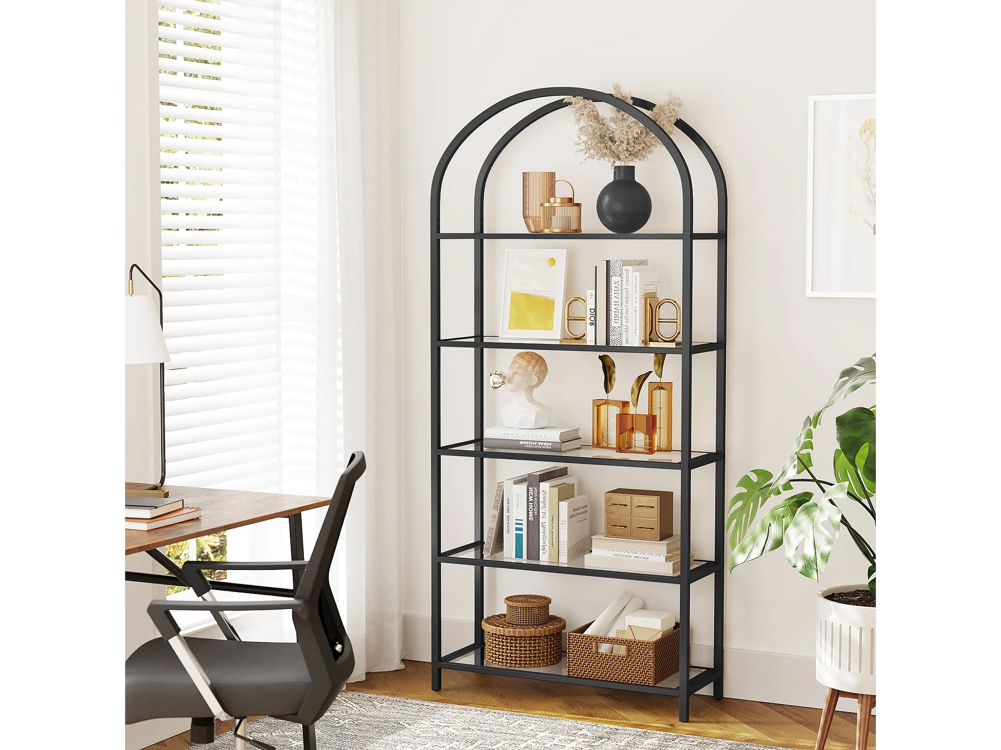 Bibliothèque Valora LGT050B61, étagère en verre noir, style moderne pour salon