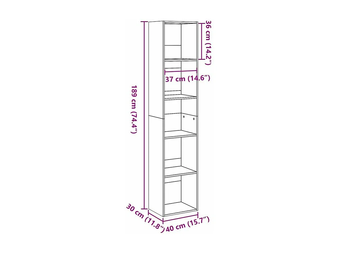 Bibliothèque 5 niveaux chêne fumé 40x30x154 bois d'ingénierie