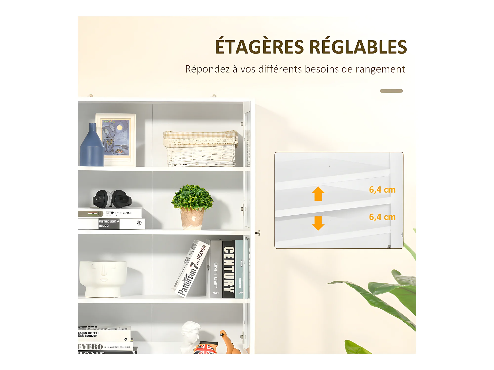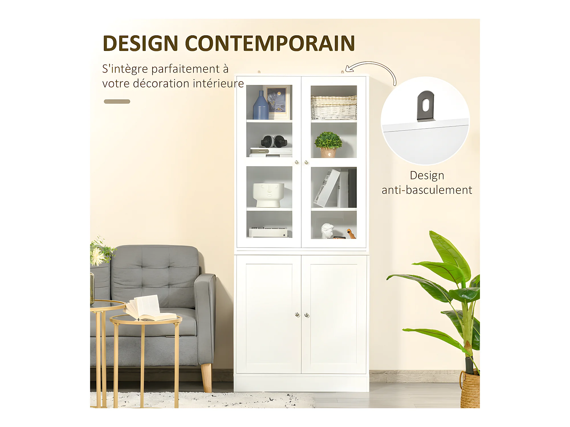 Bibliothèque vitrine 4 portes PISE bois blanc