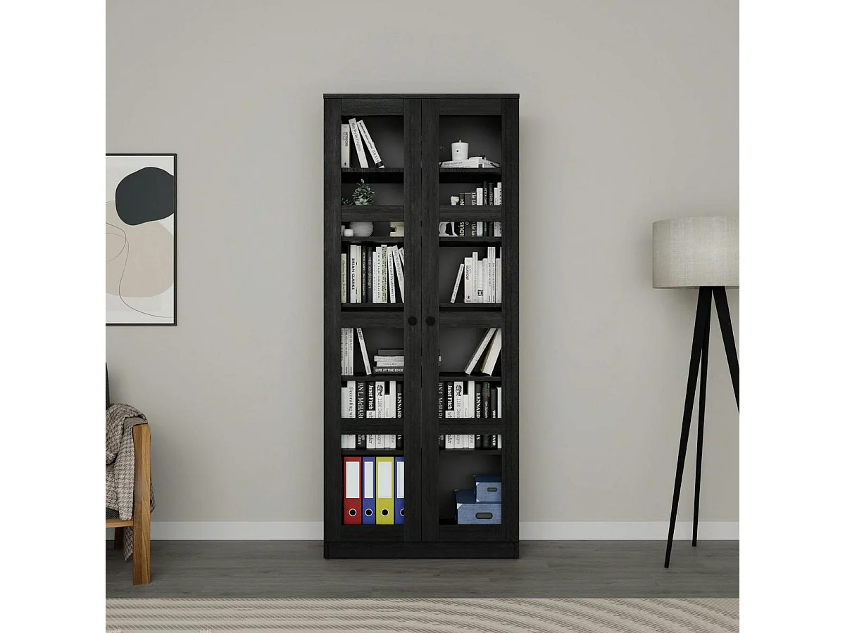 Bibliothèque vitrine noire, 6 étagères réglables SALTA