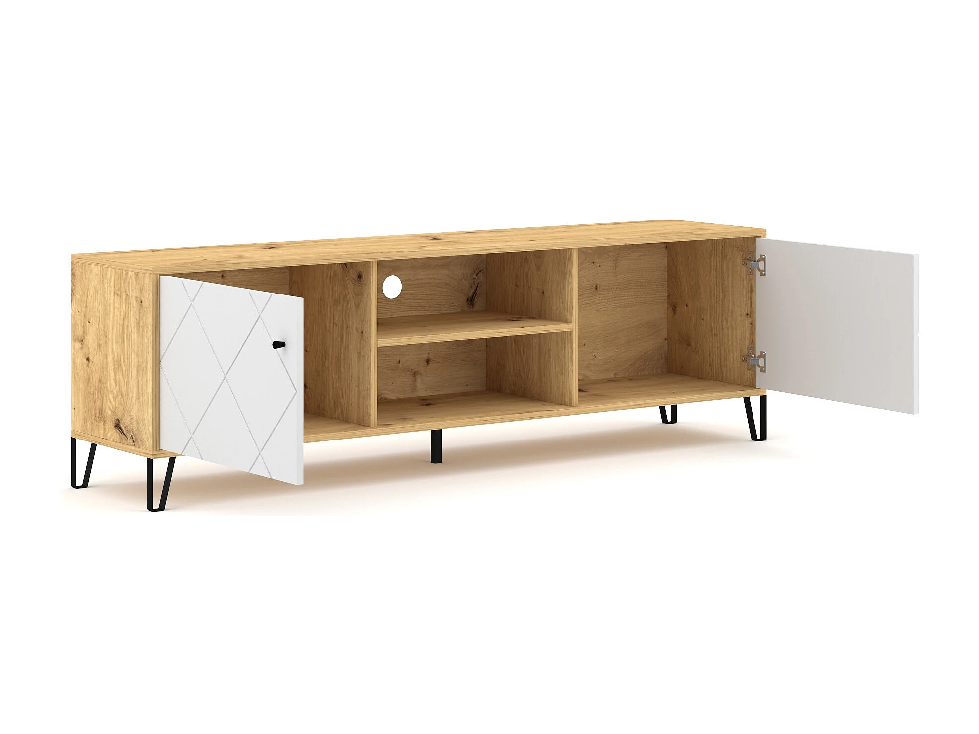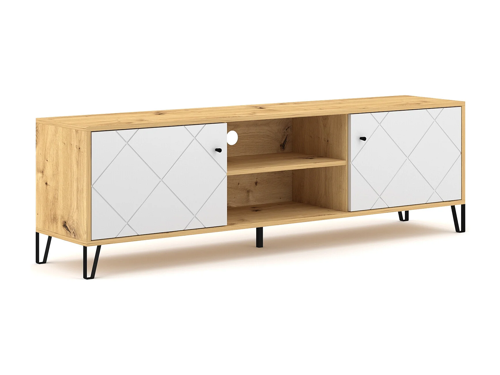 Bilbao RTV avec deux portes et une cavité en chêne artisanal avec des façades blanches