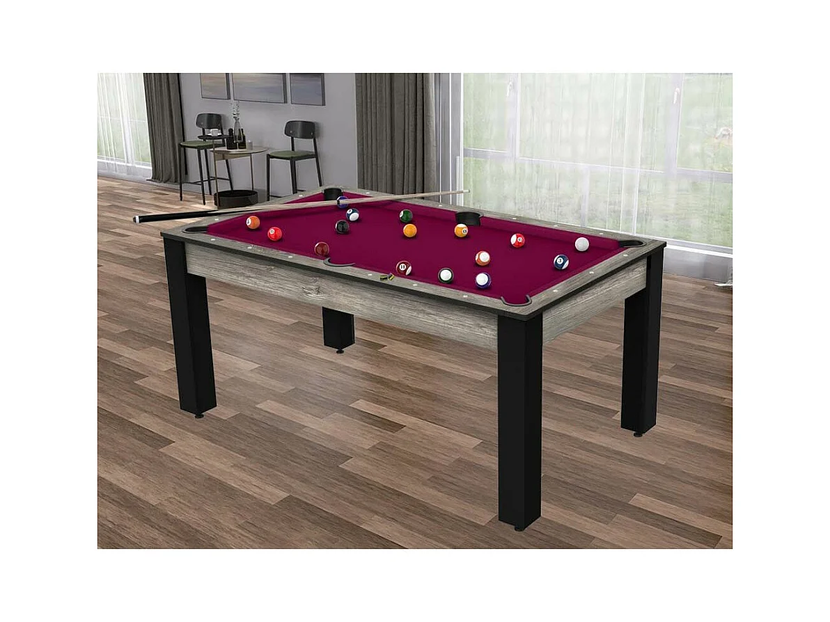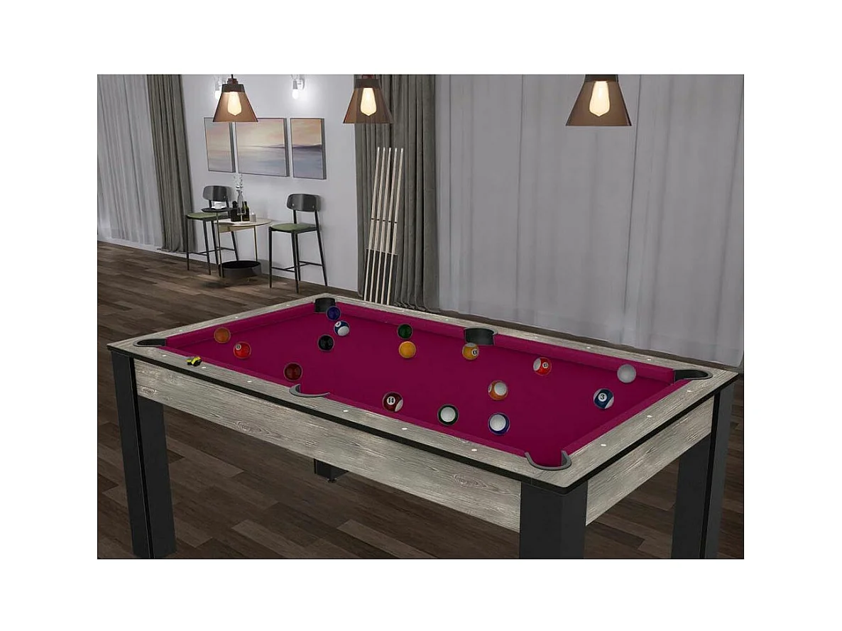 Table de Billard Convertible "Ohio" 185cm Gris & Prune