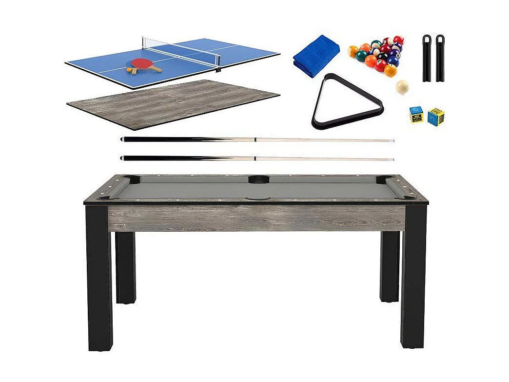 Billard convertible table 6 personnes Texas + plateau 2 en 1 dinatoire et Ping Pong + pack accessoires Confort