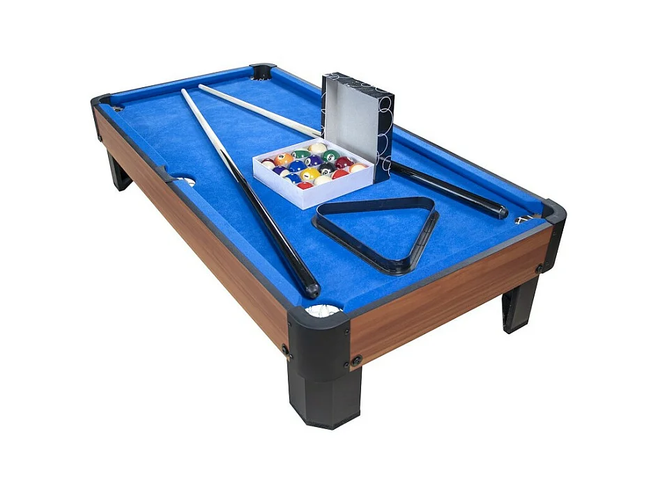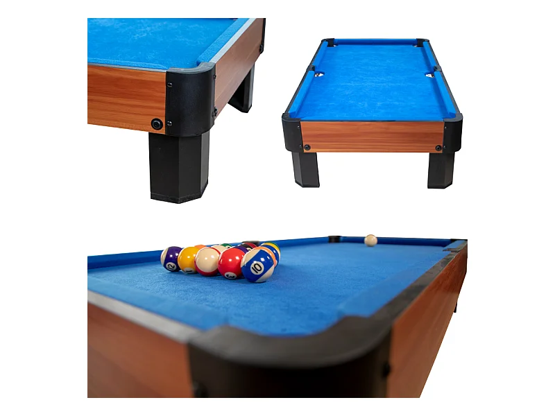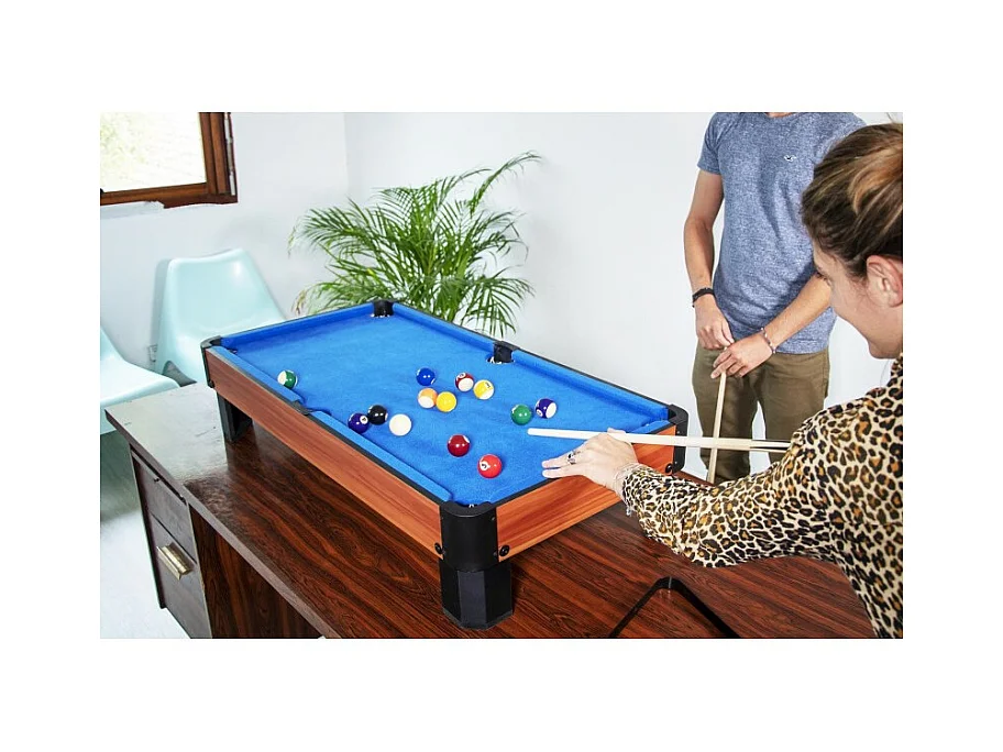 Billard de table avec accessoires - Kit Billard Compact de bureau ou salle de jeu, 102 x 51 x 22,5 cm - Marron et Tapis Bleu