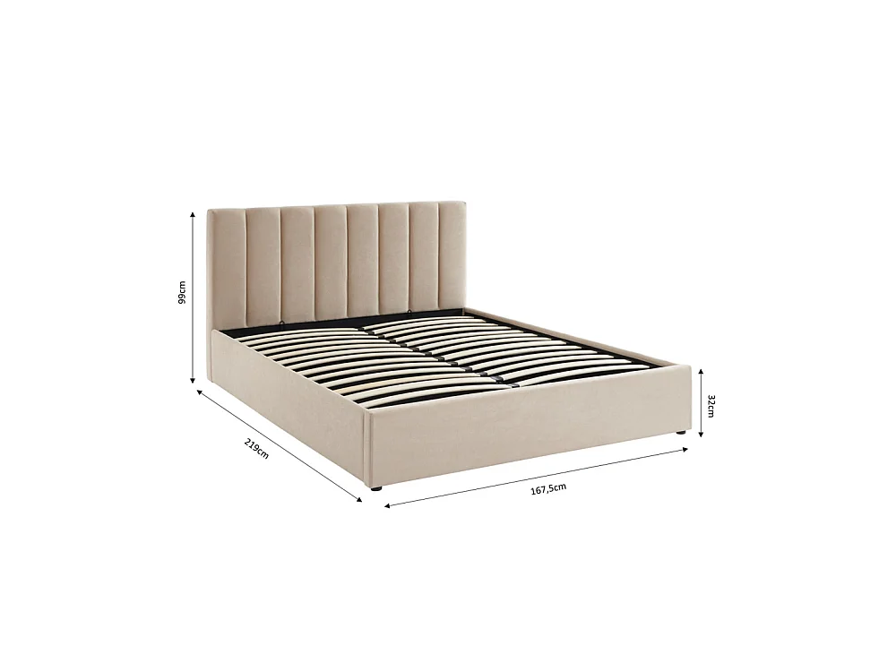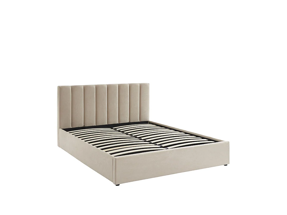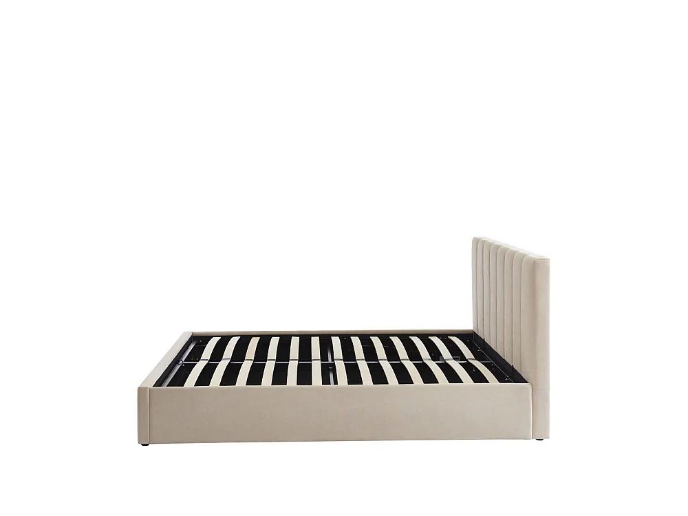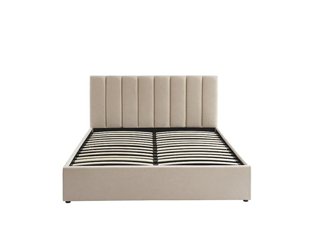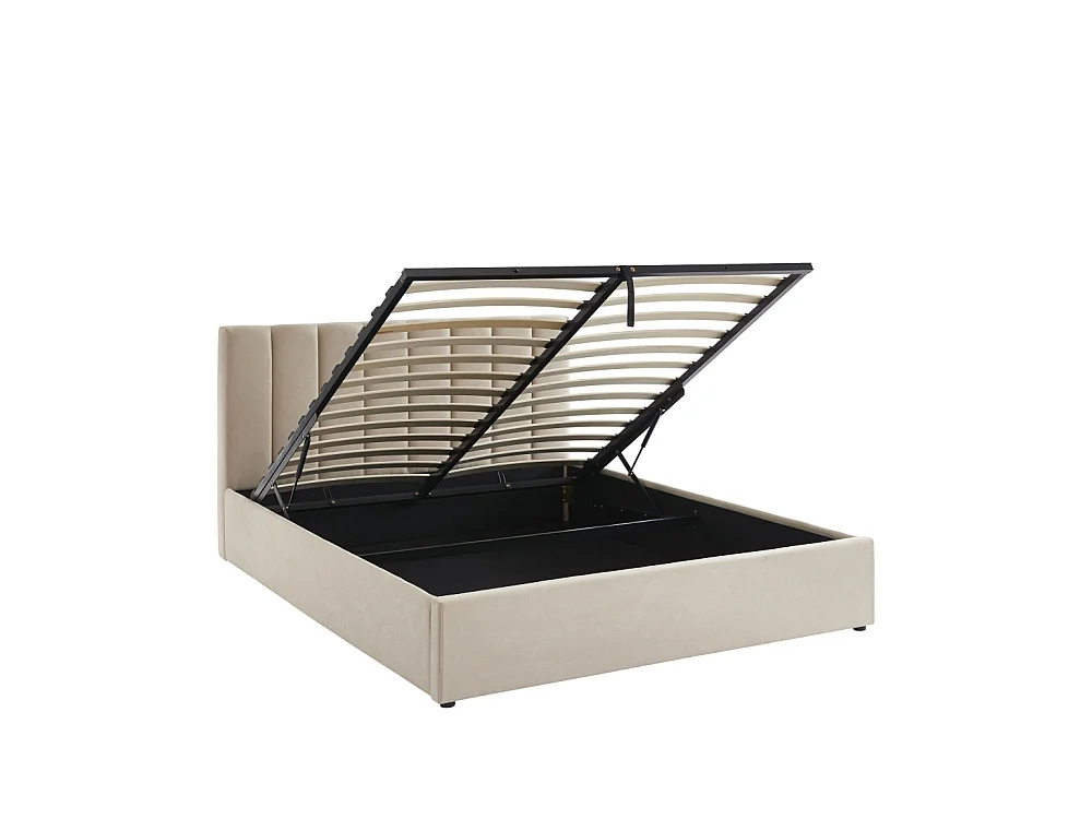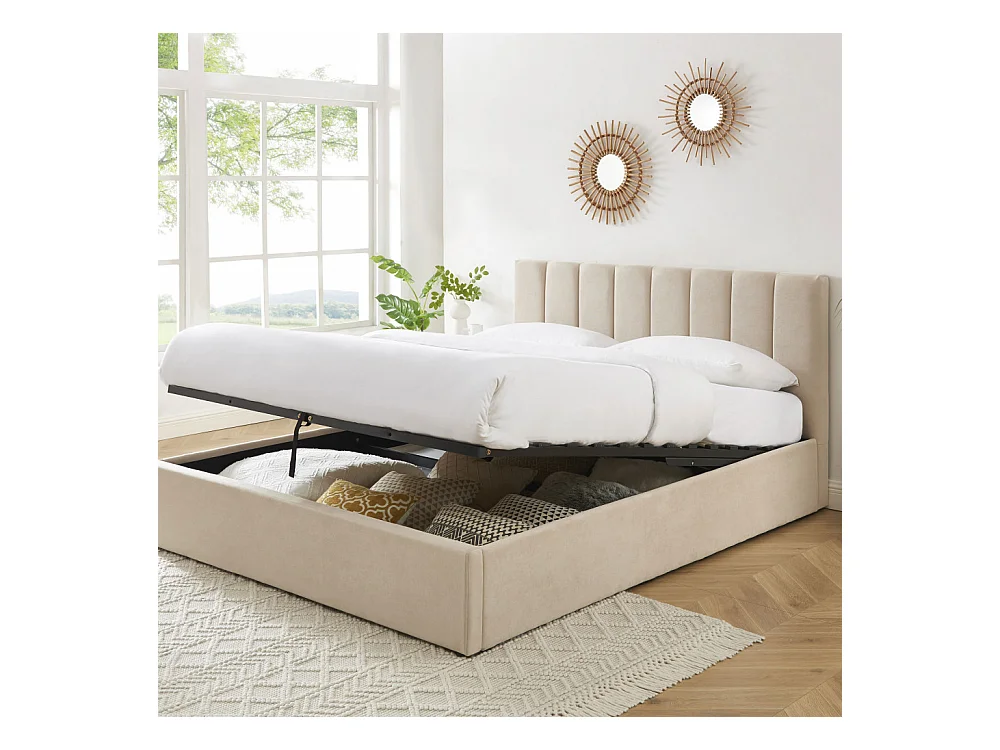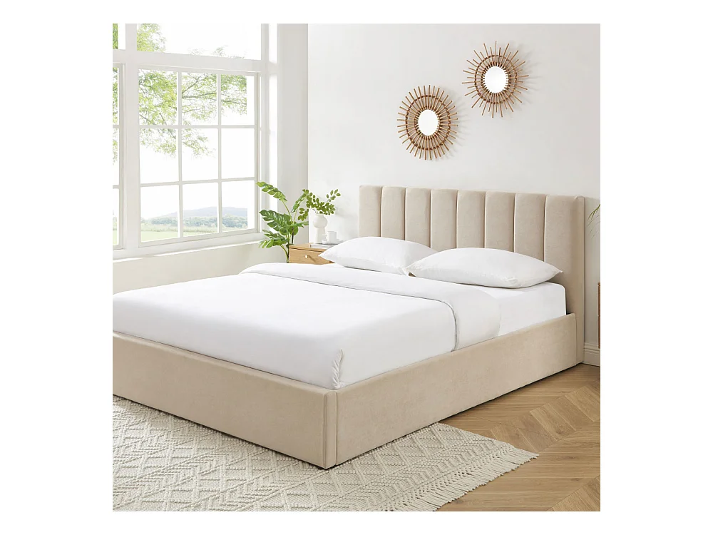 Billie - Lit coffre matelassé en tissu 160x200cm - Beige