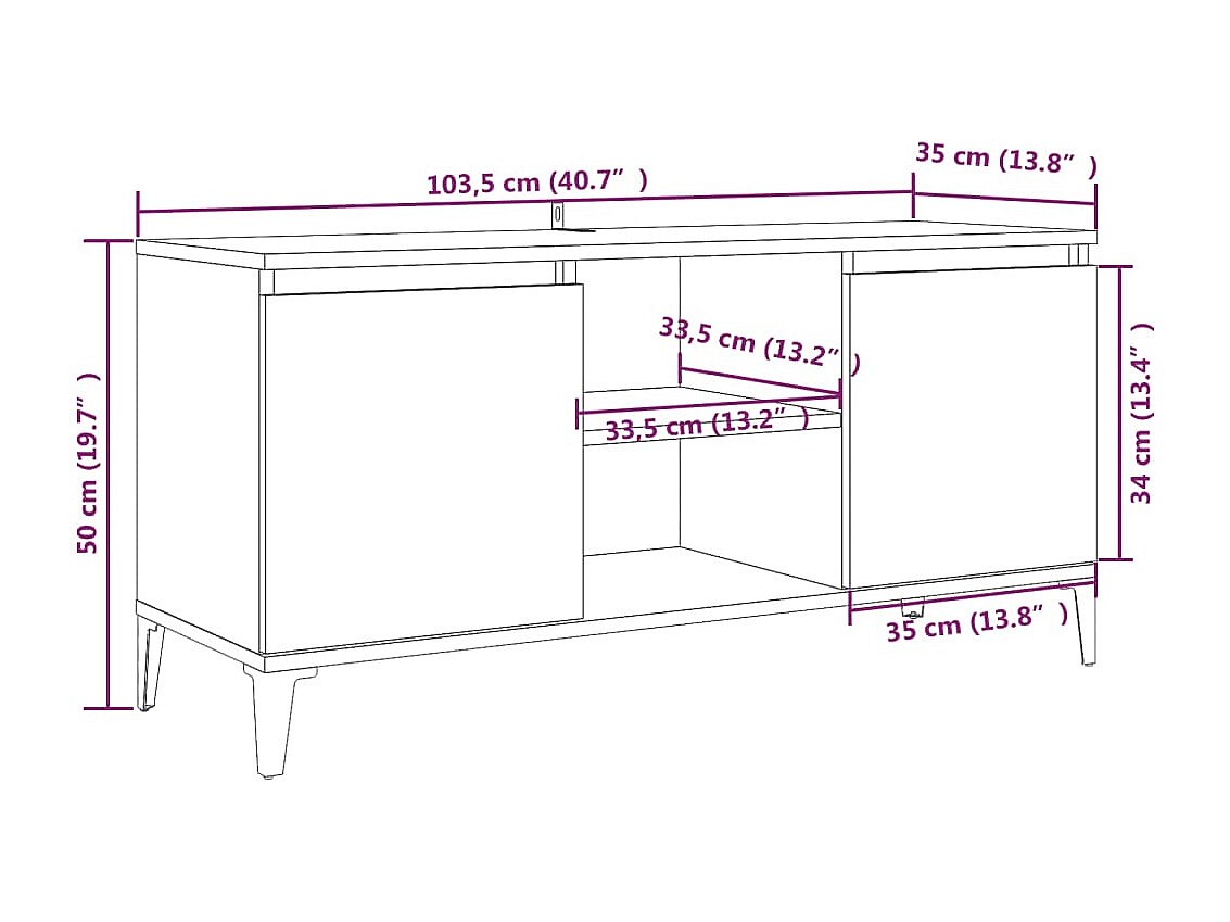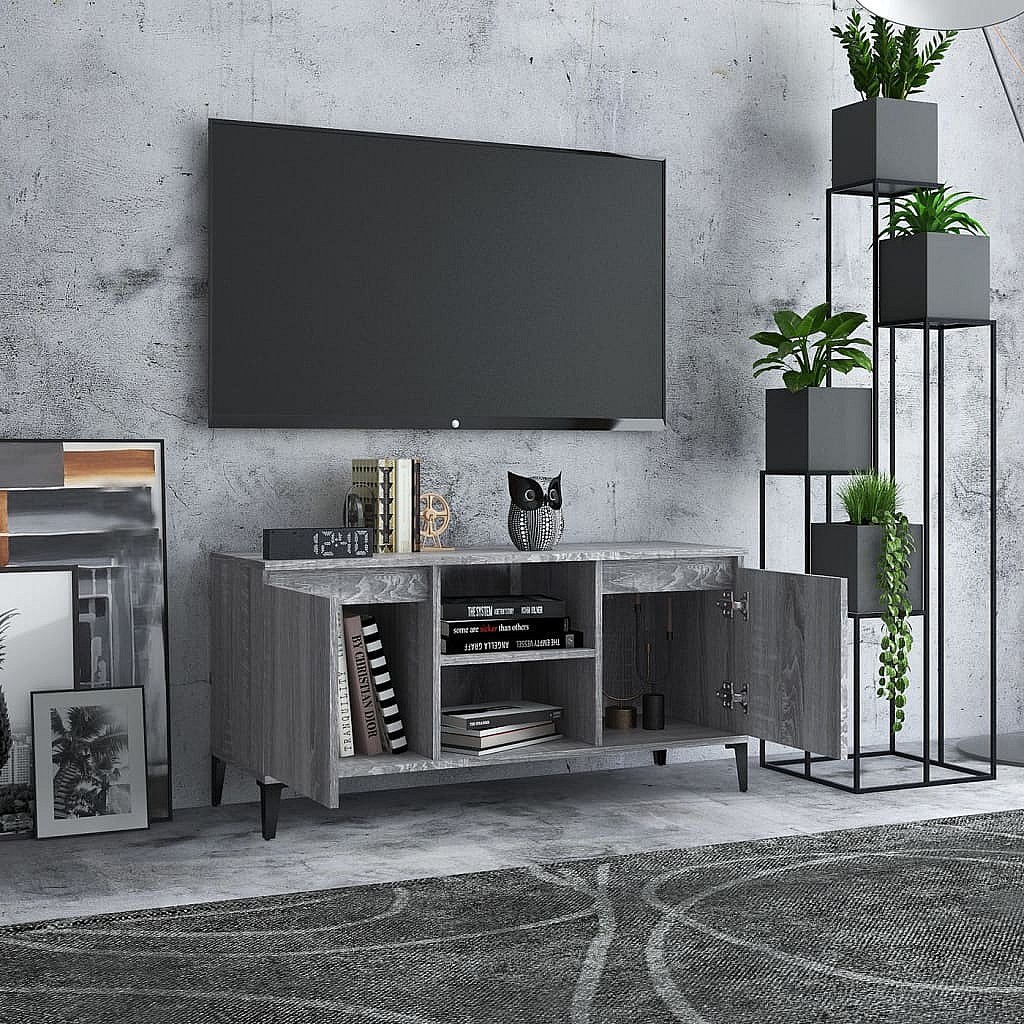 Billie Meuble TV avec pieds en métal Sonoma gris 103,5x35x50 cm