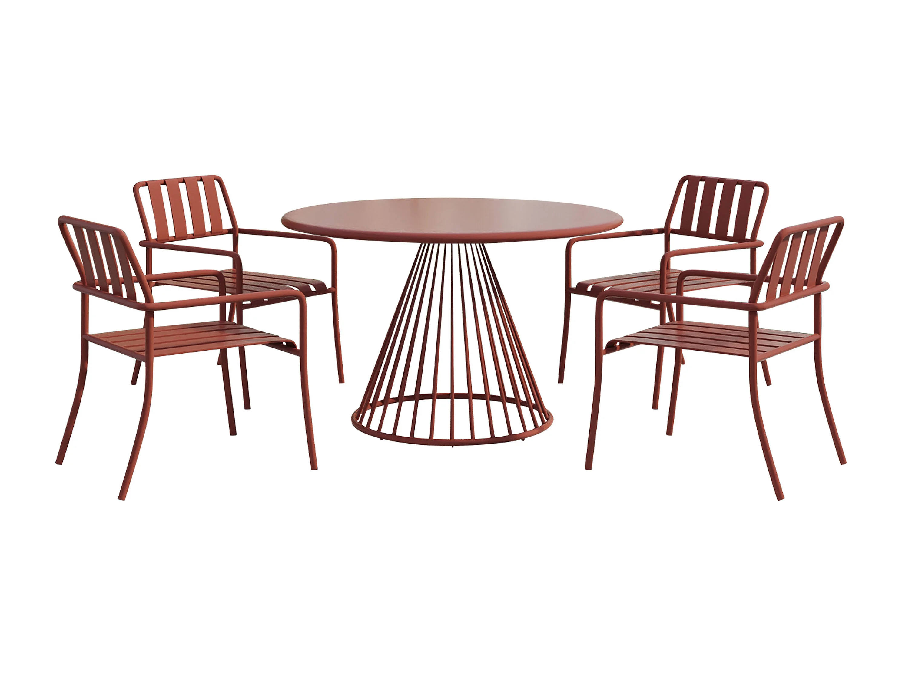 Salle à manger de jardin en métal : la table D.120 cm et 4 fauteuils empilables - Terracotta - BIRMOS de MYLIA