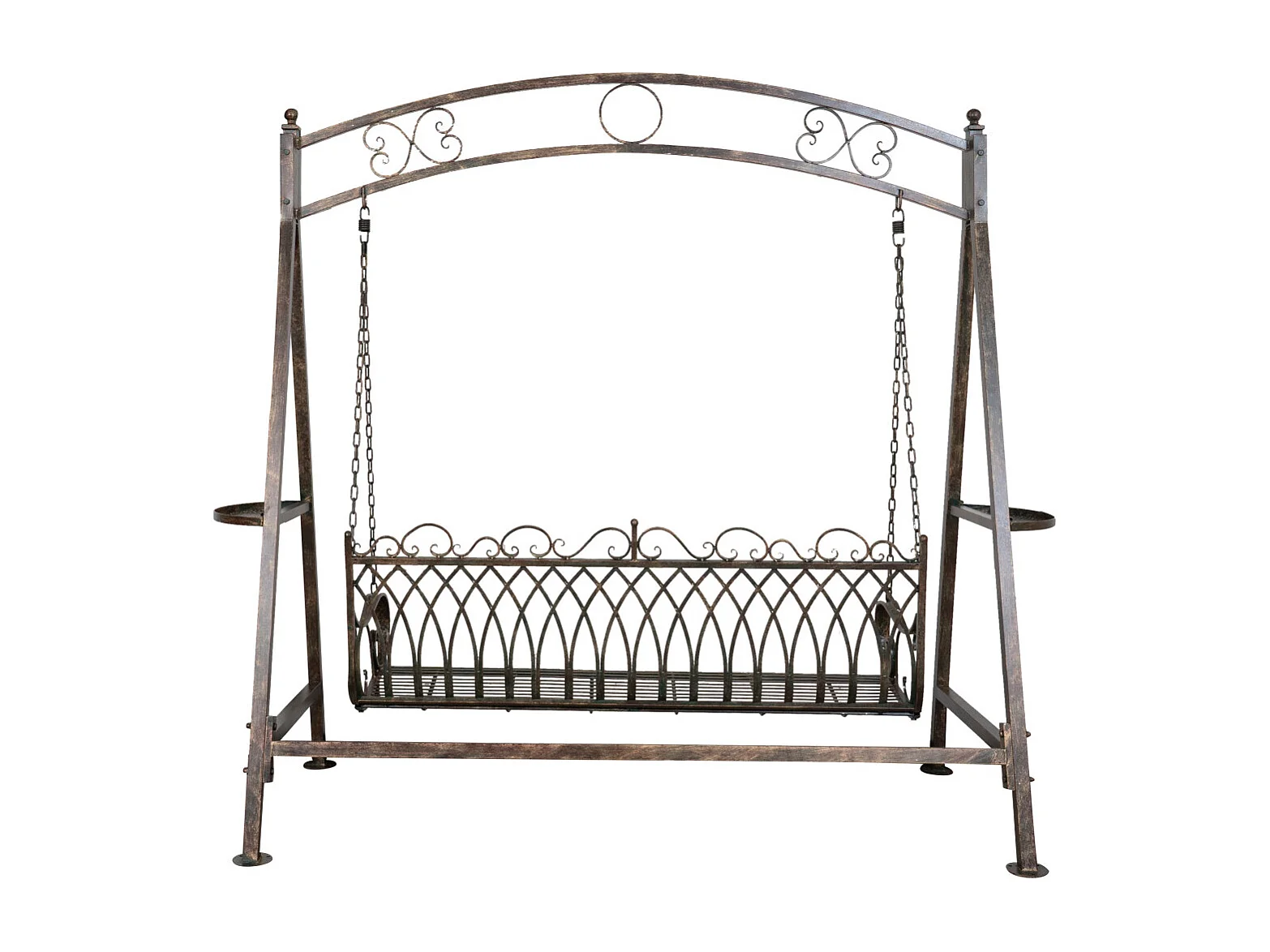 BISCOTTINI - Chaise balançoire - Fer forgé finition naturelle - Chaise de jardin - Chaise d'extérieur - Chaise de terrain de jeu - Terrasse - 248x100x220 cm