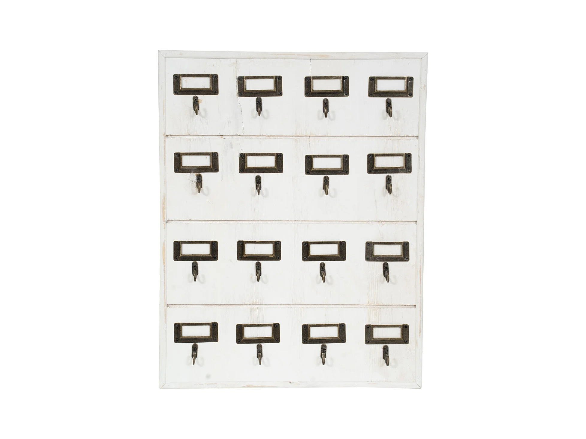 BISCOTTINI Porte-Clés en Bois - Finition Blanc Antique - Décoration d’Entrée - Rangement - Suspendu - Support Mural - 37 x 4 x 47 cm - 16 crochets