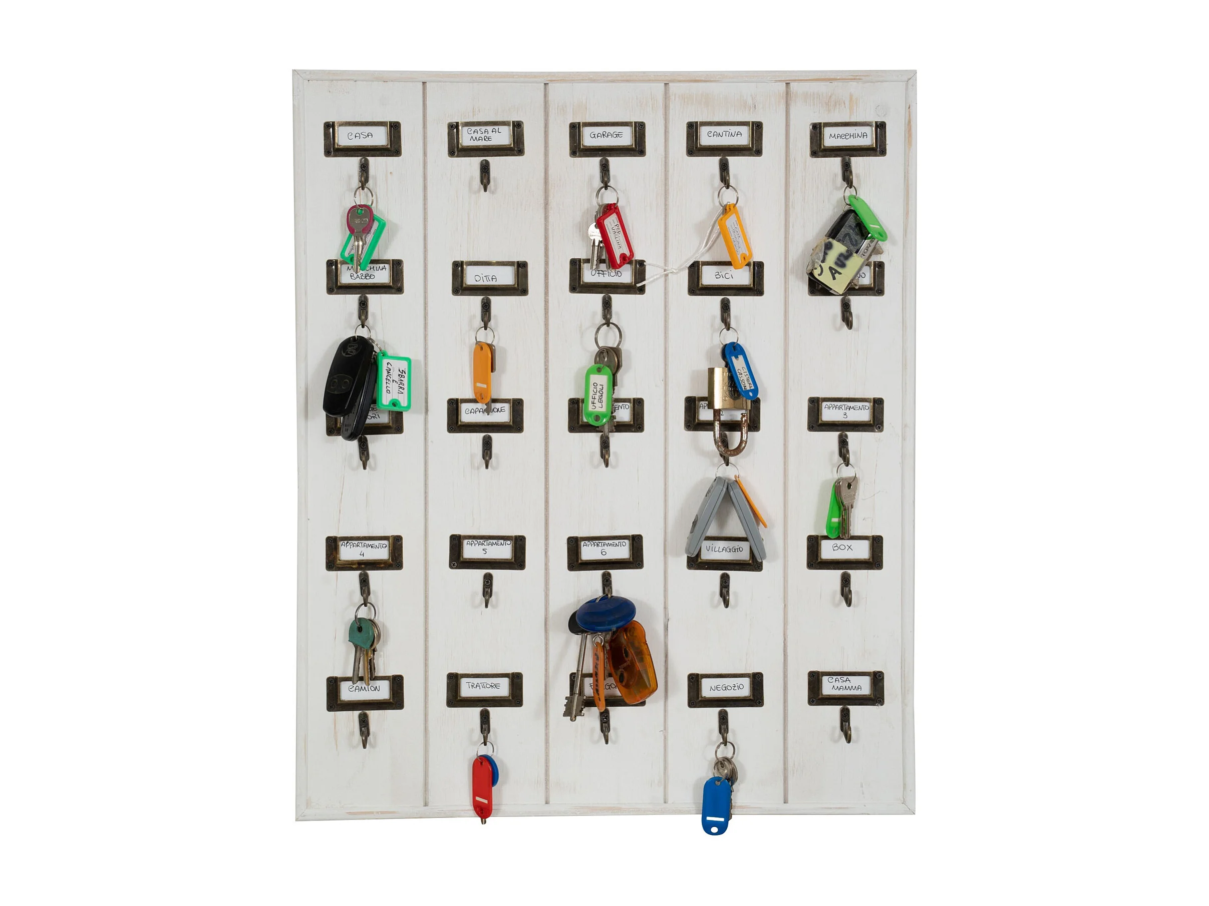 BISCOTTINI Porte-Clés en Bois - Finition Blanc Antique - Décoration d’Entrée - Rangement - Suspendu - Support Mural - 49.5 x 4 x 60 cm - 25 crochets