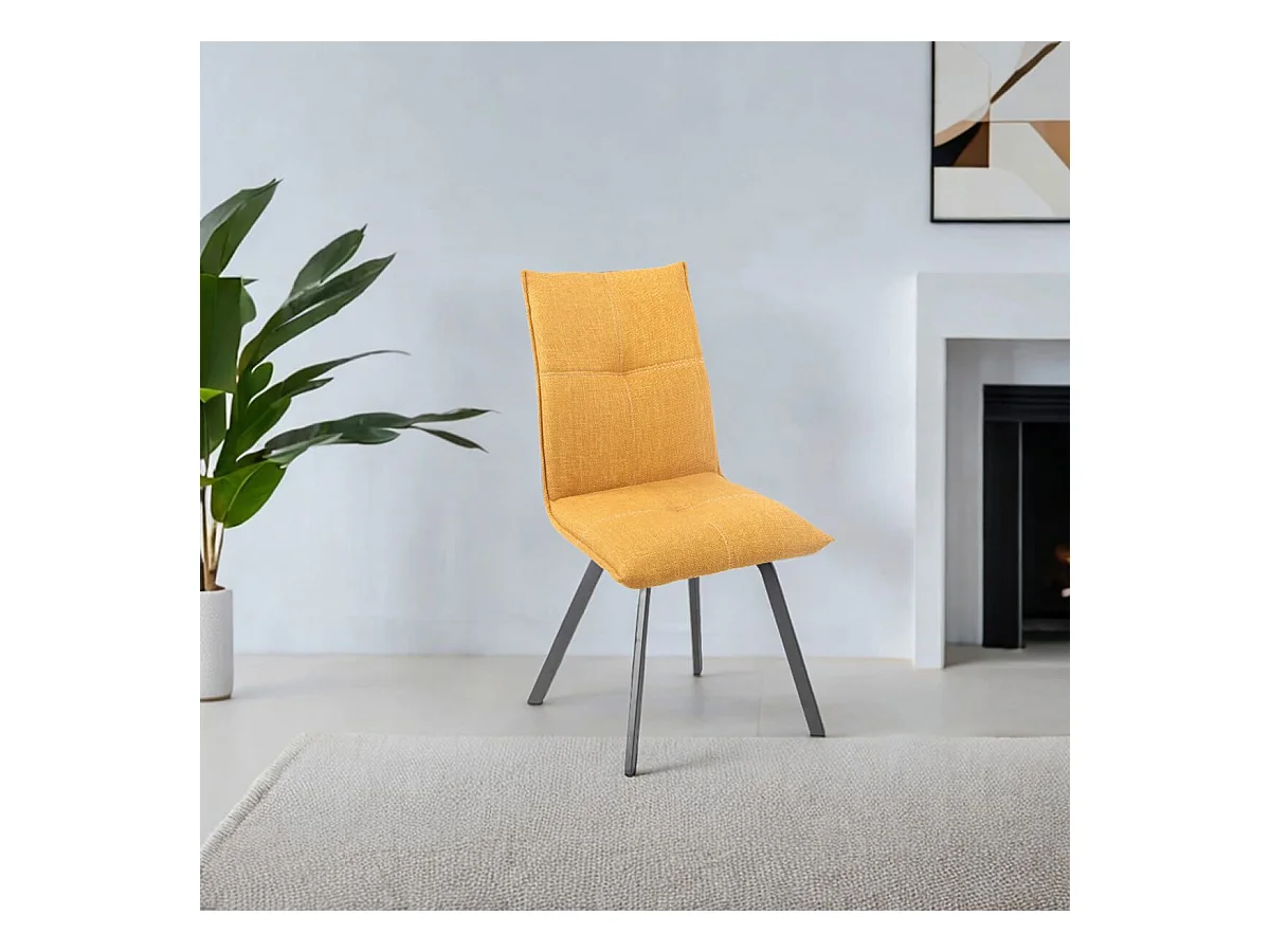 BISPO - Lot de 4 Chaises Tissu Texturé Coloris Jaune moutarde