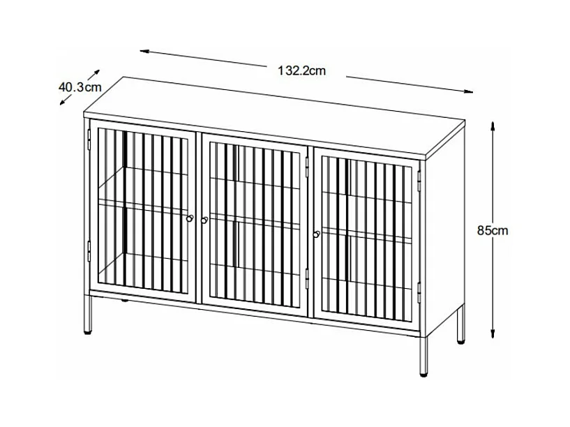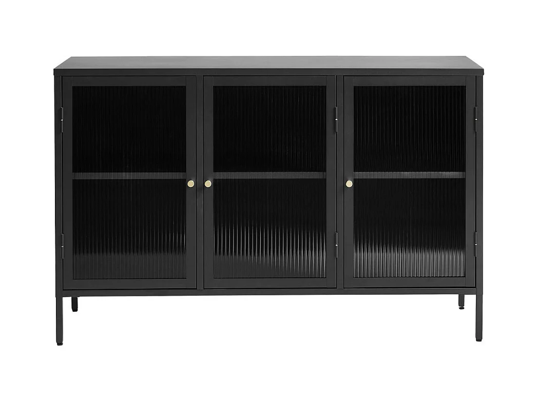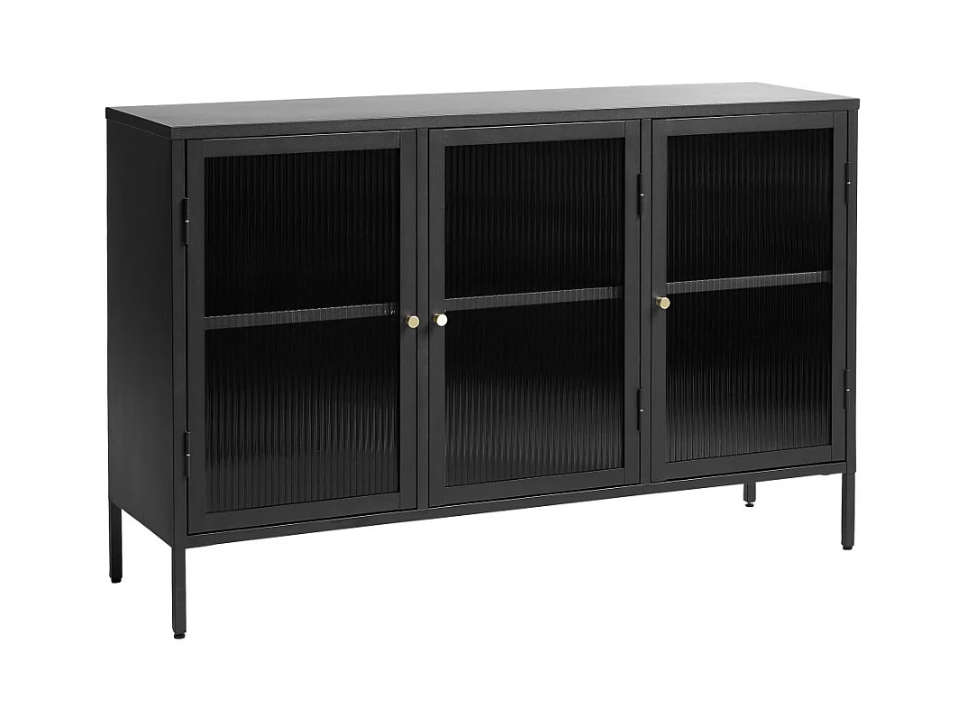 Bjorn - Buffet 3 portes en verre strié et métal L132cm : Couleur - Noir