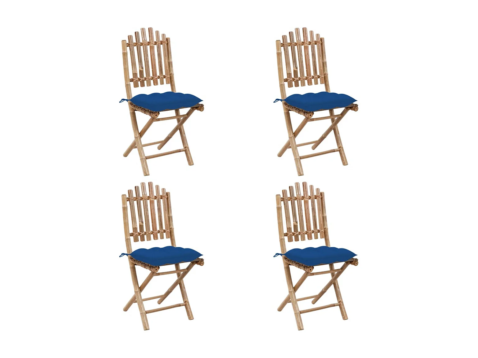 Blaire Ensemble à manger d'extérieur pliable 5pcs avec coussins Bambou