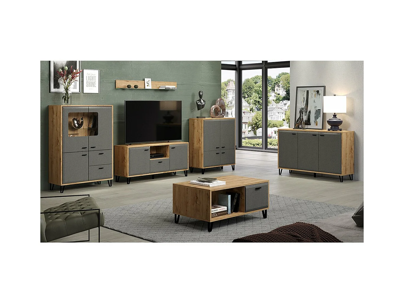 Vaisselier 3 portes dont 2 avec verre trempé et 2 tiroirs L98 cm - BLANSHE