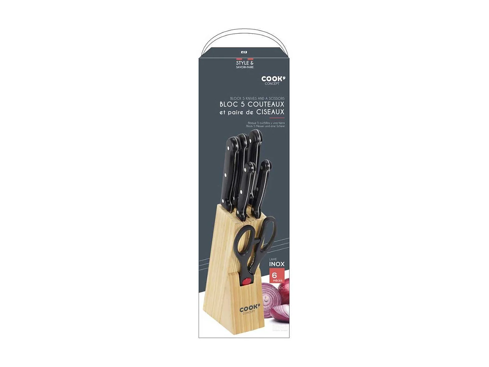 Bloc de 5 couteaux + 1 paire de ciseaux de cuisine