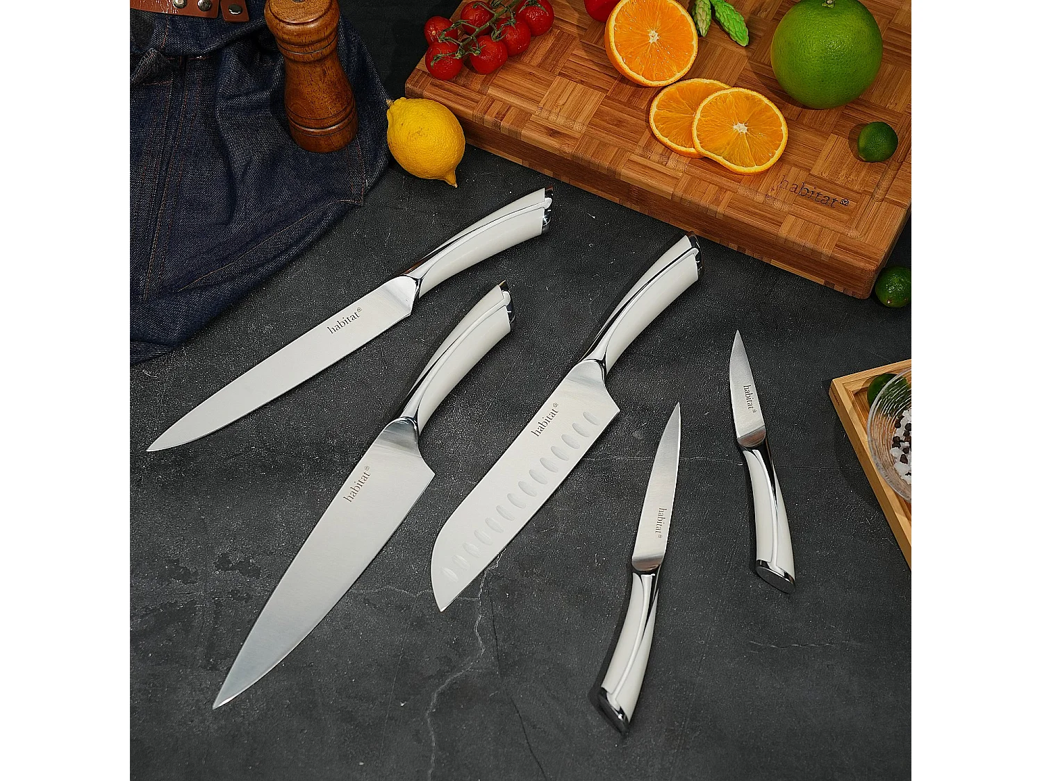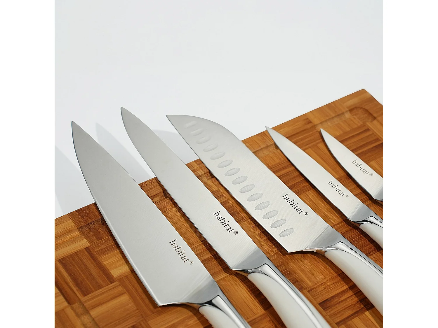 Bloc de 5 couteaux en acier inoxydable - Blanc