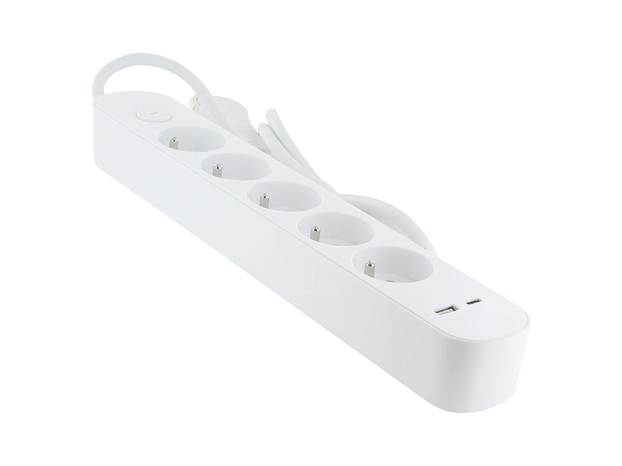 Bloc multiprise 5x16A USB-A+USB-C - câble 1,5m - Chacon