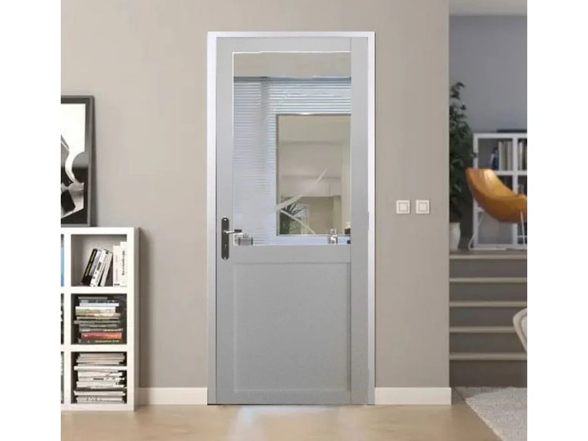 Bloc Porte Atelier BLANC sans meneau H204 x L73 Poussant Droite Cotes Tableau +Poignee