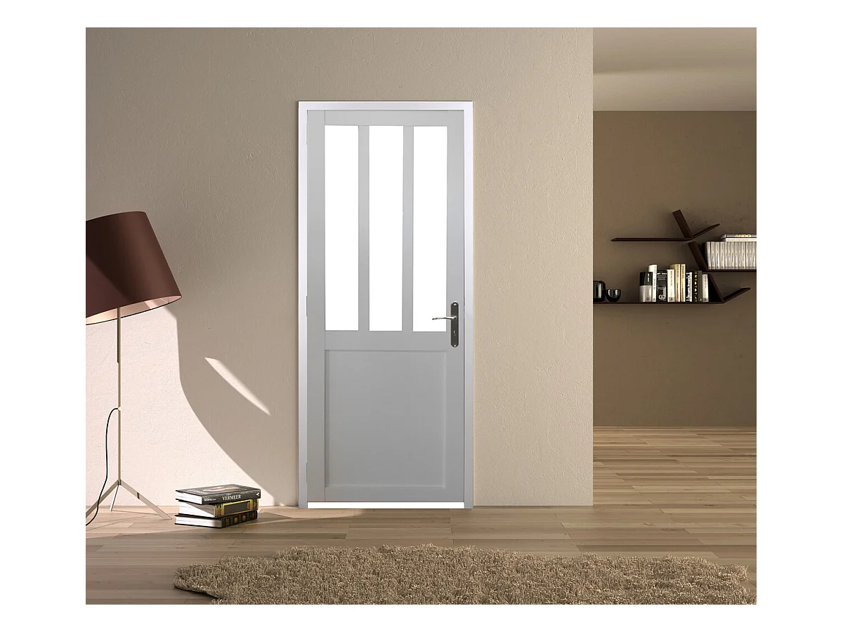 Bloc Porte Atelier Blanc Vitre Depoli H204 X L73 Poussant Gauche Cotes Tableau Gd Menuiseries