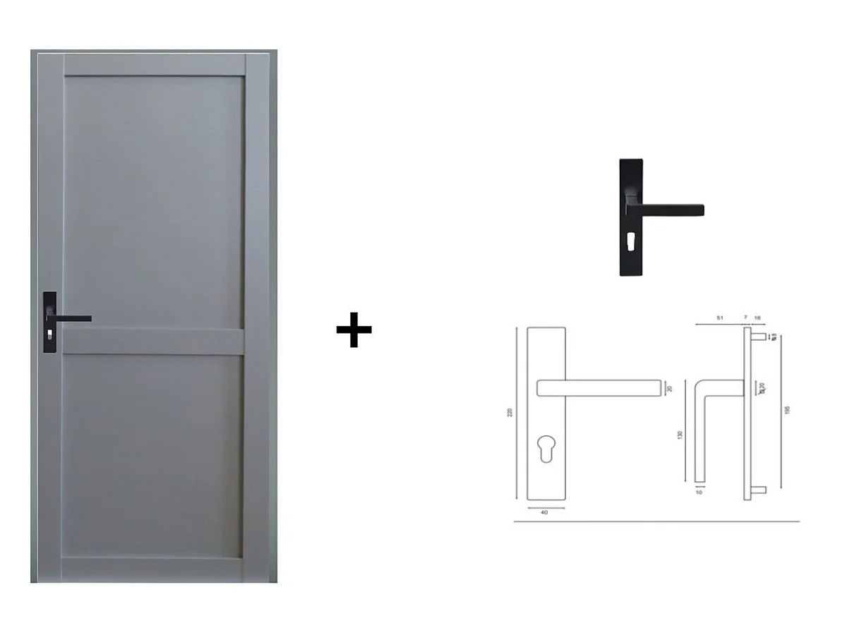 Bloc Porte Athena Ral7035 2 Panneaux H204 X L73 Poussant Droite Cotes Tableau +poignee Gd Menuiseries