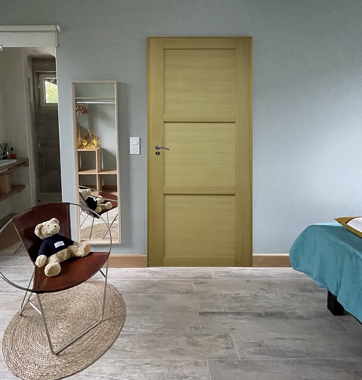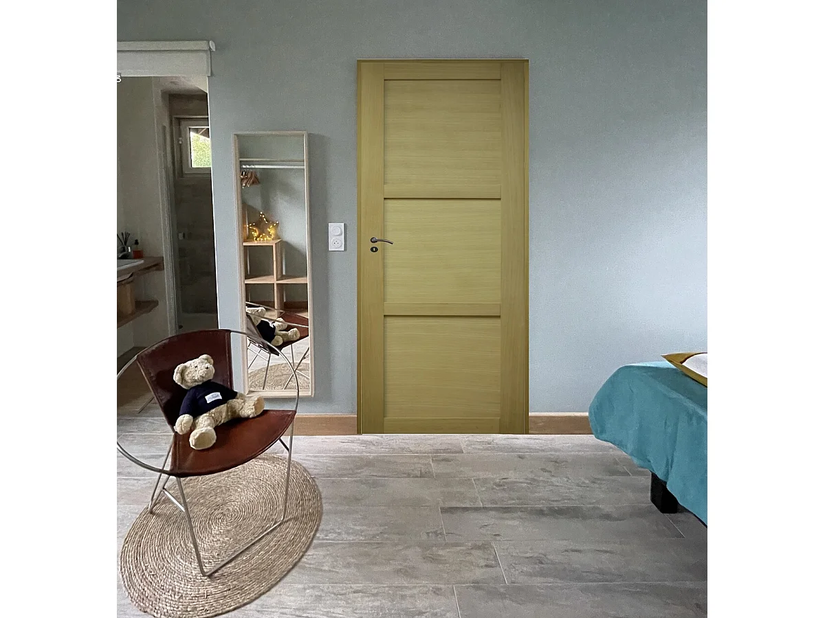 Bloc Porte Ayous 3 Panneaux H204 X L83 Poussant Droite Cotes Tableau +poignee Gd Menuiseries